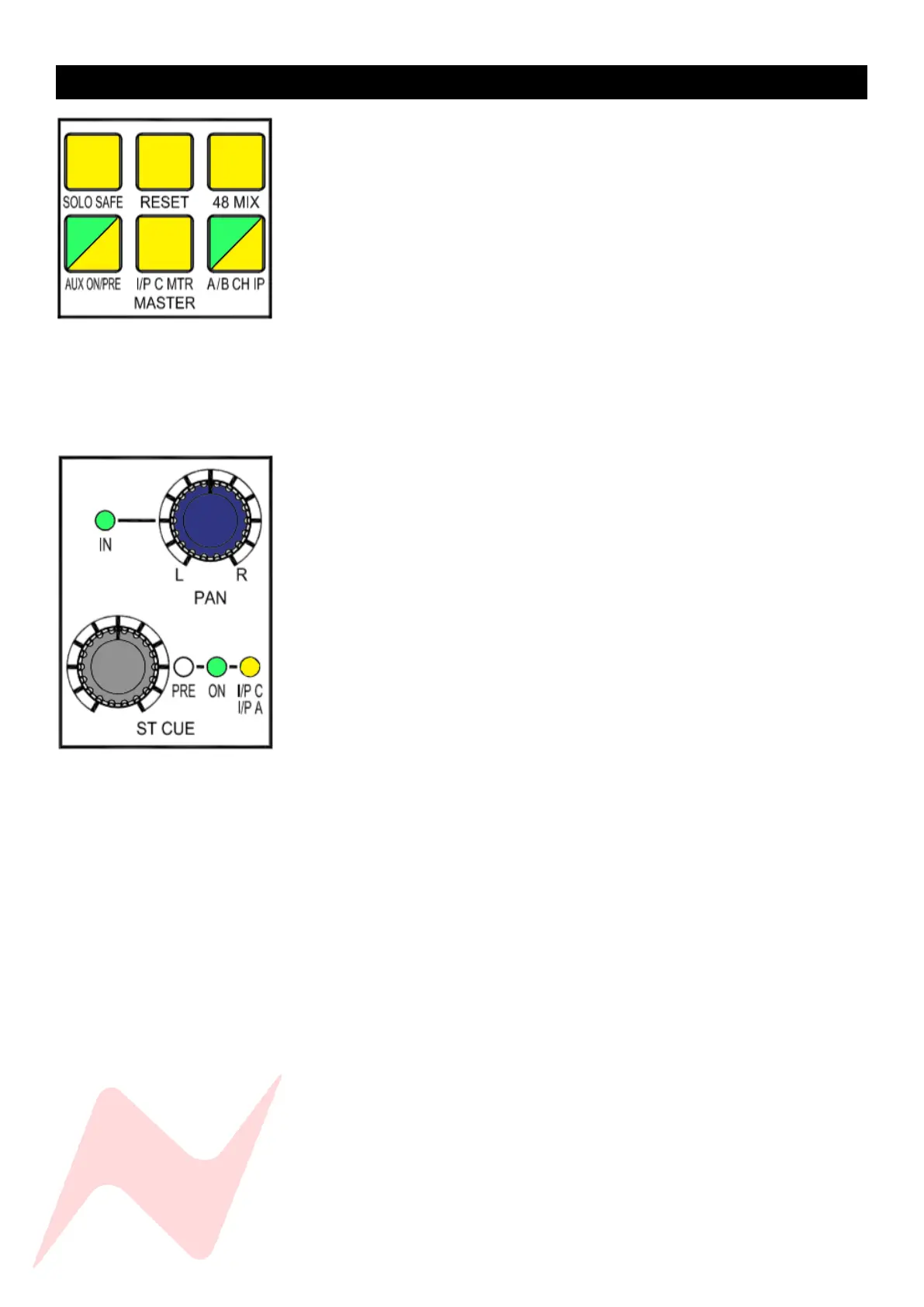 24 (I/P A) which are controlled by the channel fader and pan at the bottom