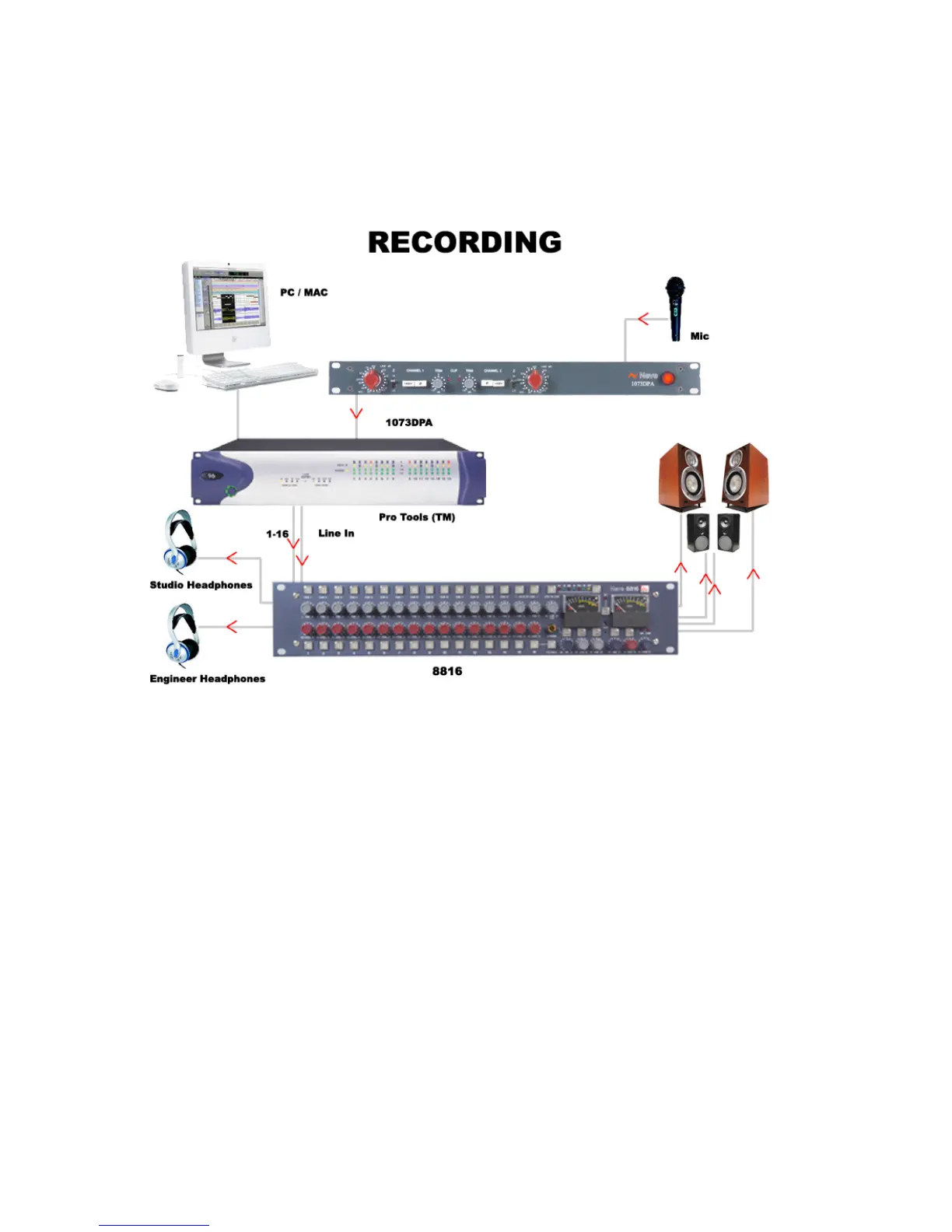 inputs of the 8816 (via a 1073 or similar mic pre if required). Connect the main output