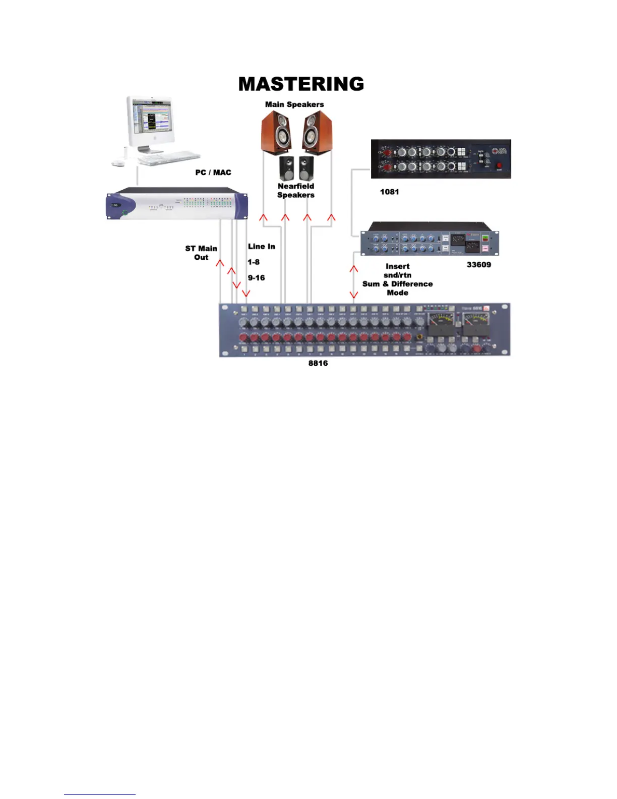 entering the 8816 on inputs 1 and 2, the sound leaving the 8816 on the mix bus and