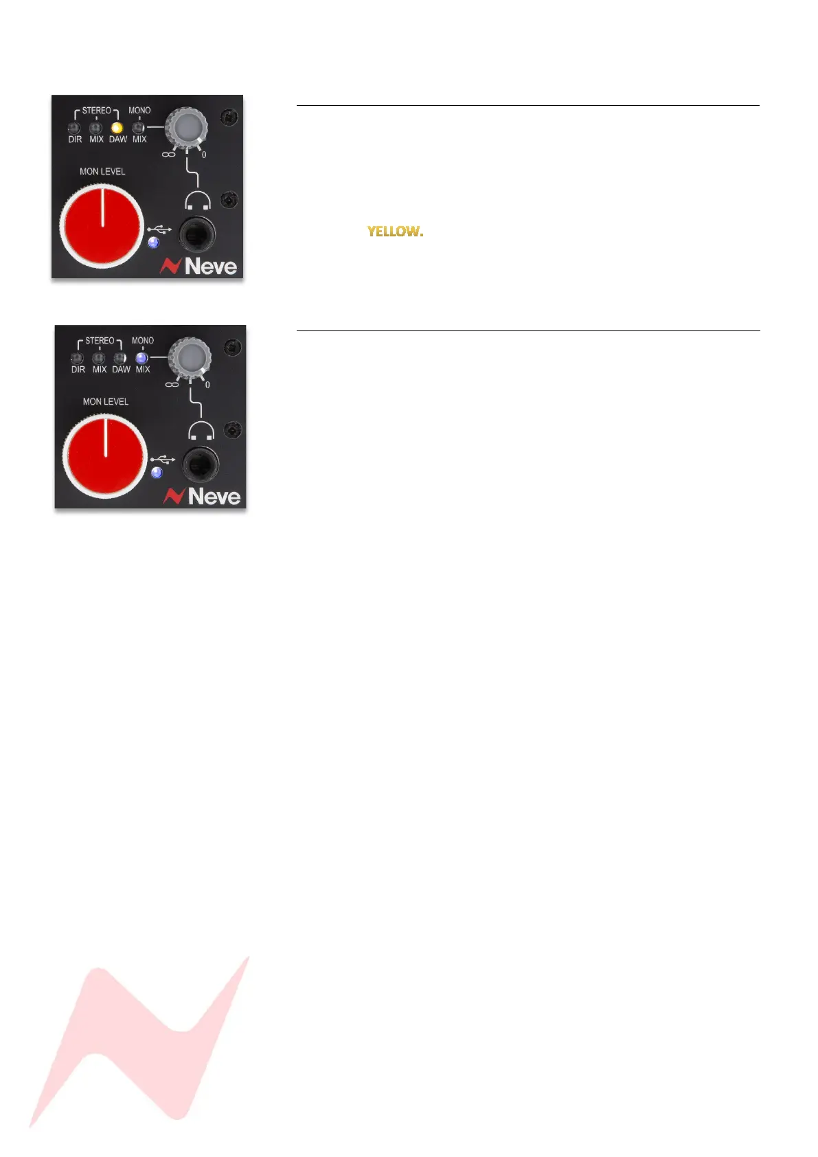 To select DAW output monitoring, press the HP Level pot until the DAW LED