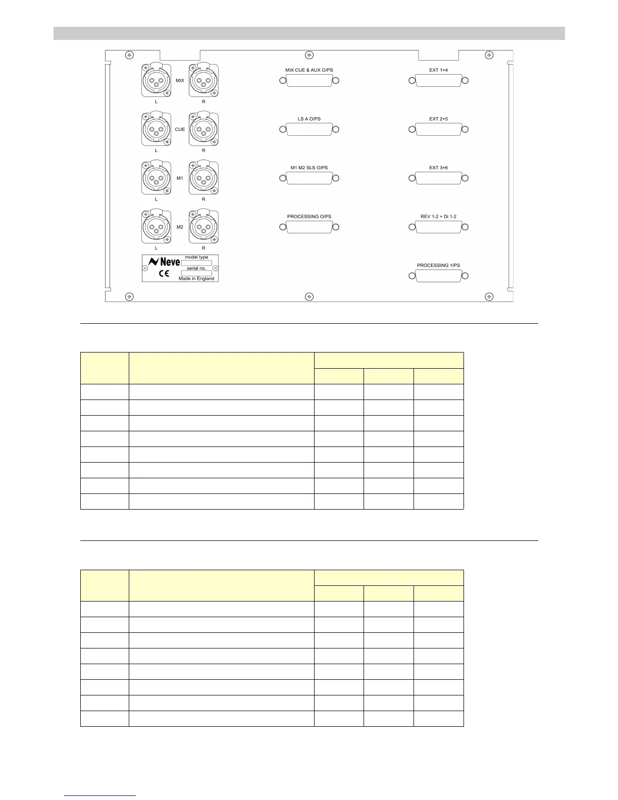 Neve BCM10/2 MK2 - Monitor Section Connectivity; XLR Output Pin Assignments; Direct and External Input Pin Assignments