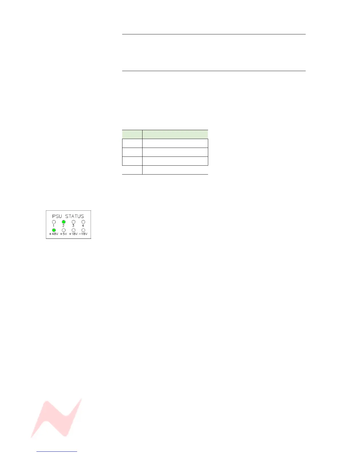 • One of the +48v, +5v, +18v or -18v leds will indicate which supply