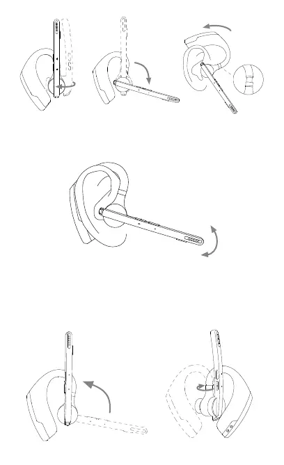 l'oreille. Tournez la perche du microphone vers le bas pour