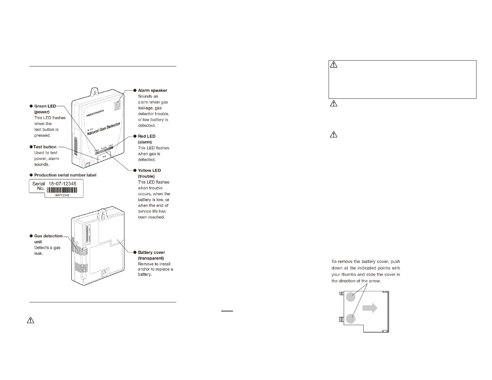 • Open the battery cover on the back of the gas alarm.