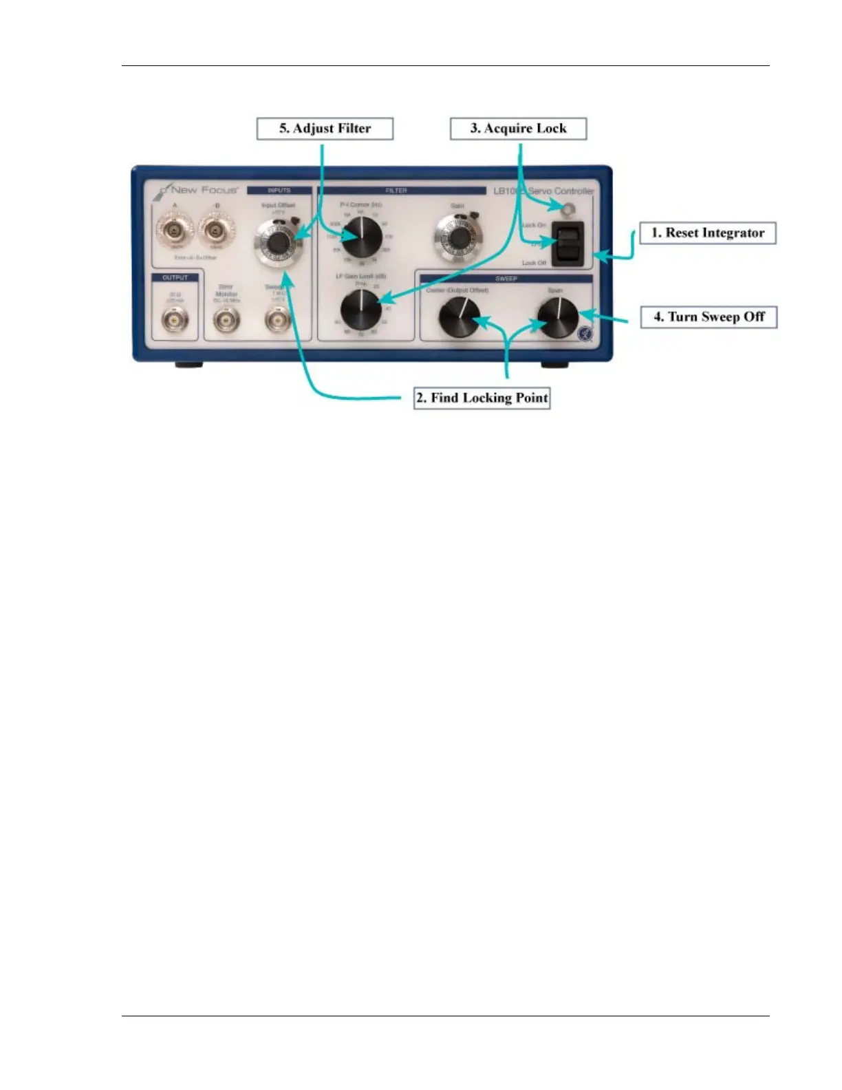 4. Turn off sweep: If the output was swept to find the lock point, then it is