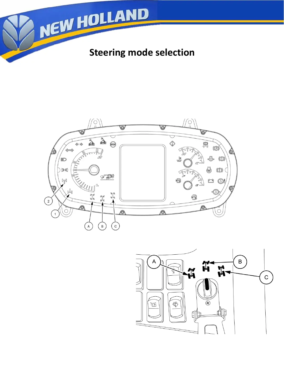 NOTE: always select the two-wheel steering mode when driving on road.