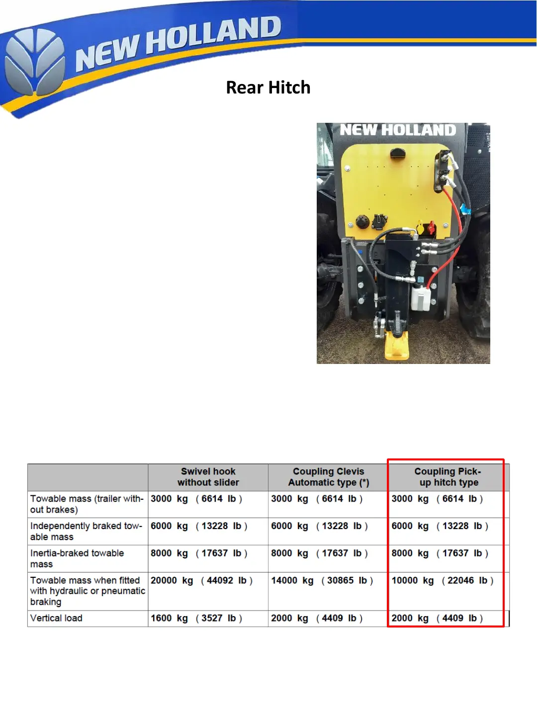 the below table. Highlighted section is the permissible load for the pick up hitch