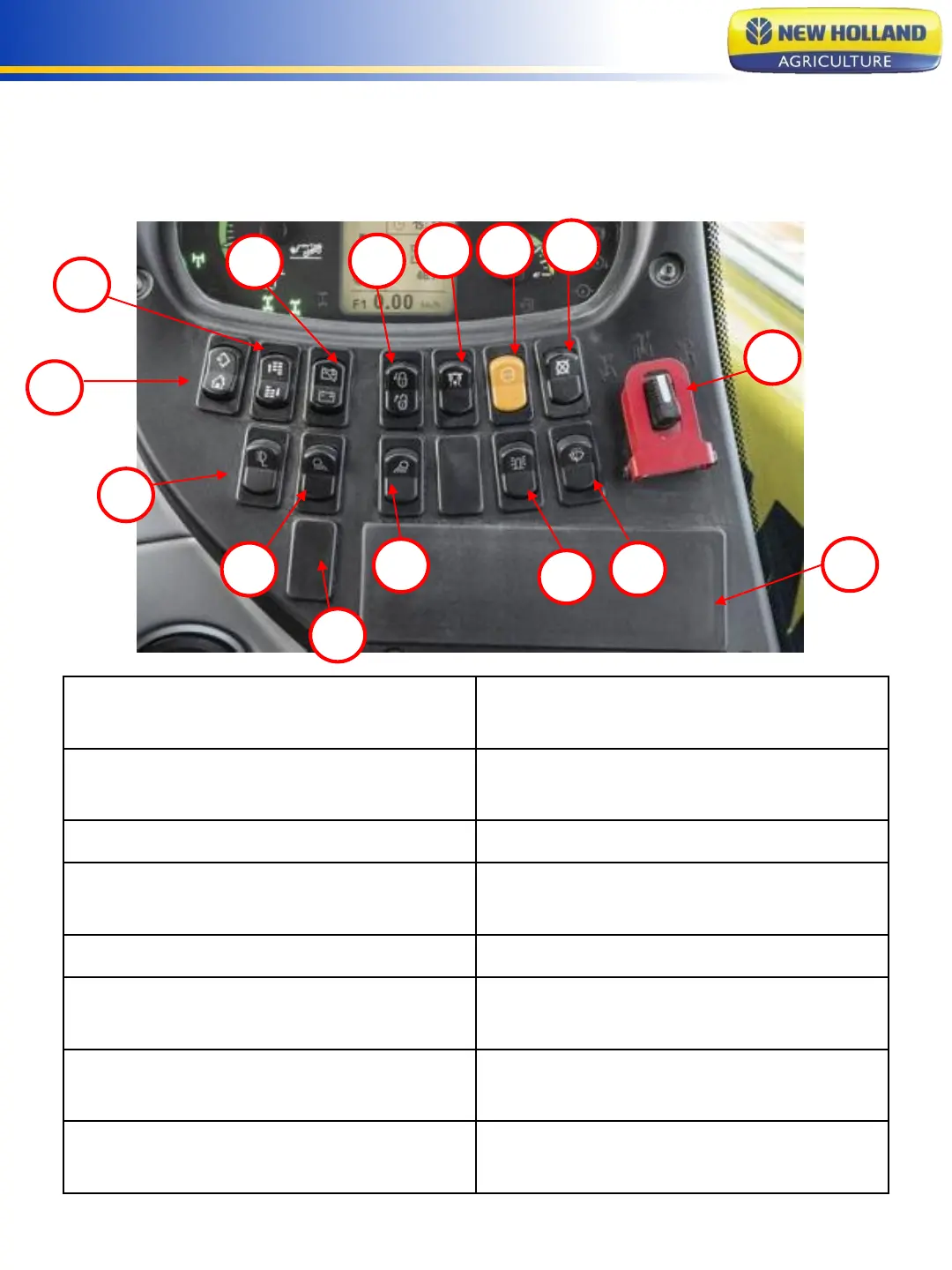 8. Rear working lights switch (optional