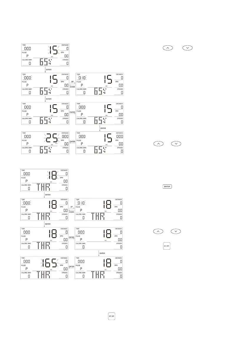 e) When any item (TIME, DISTANCE, CALORIE and STROKES) is set, this will be
