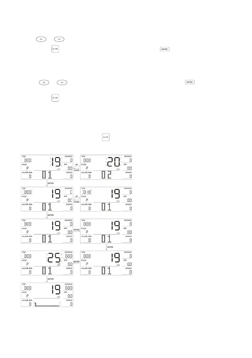 3. In the setting mode, the setting order is as follows: TIME → DISTANCE → CALORIE