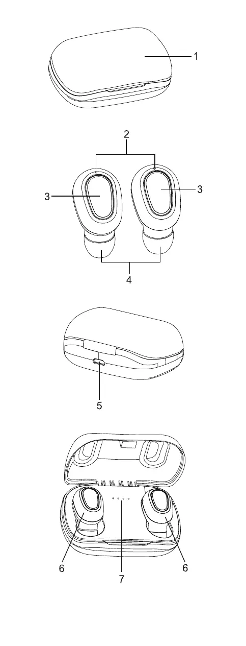 • When charging case is low battery, the indicator will ash BLUE at intervals; If the
