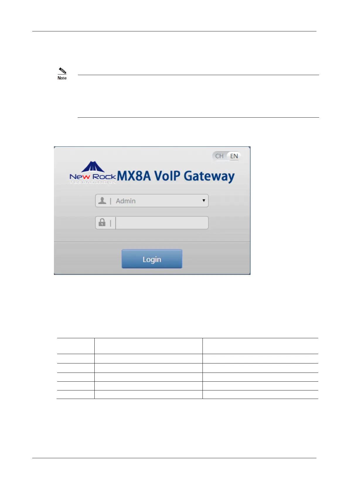 Figure 2-19 Login Interface for MX8A Gateway Configuration