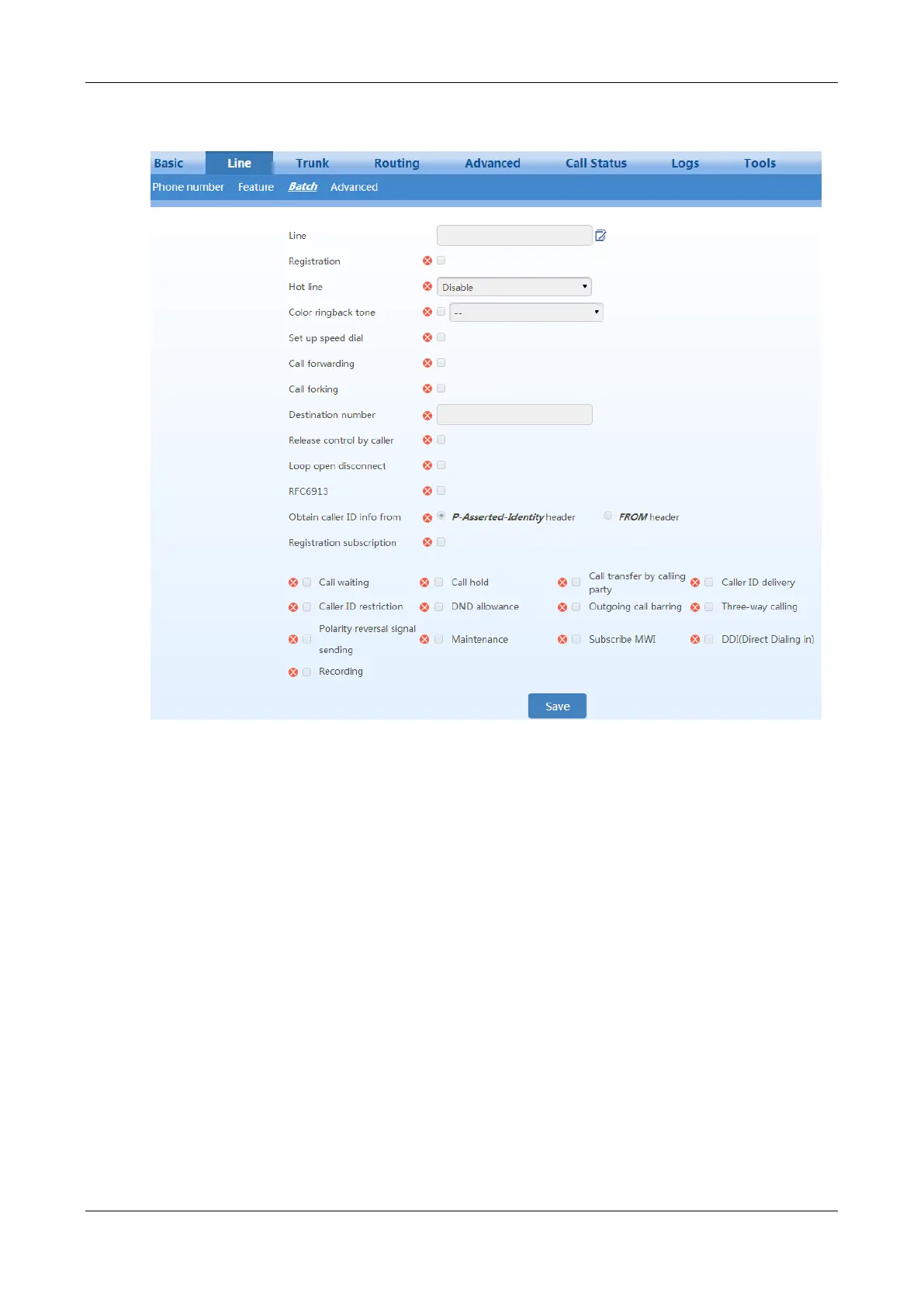 After login, click Line > feature to open the configuration interface.