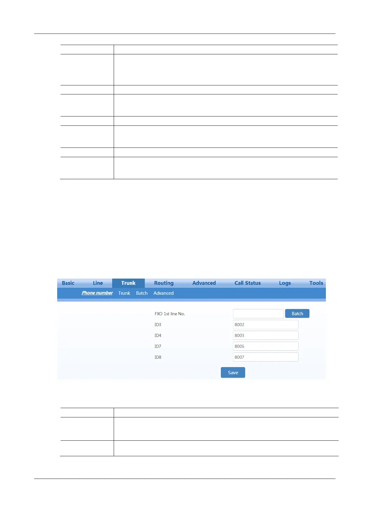 Fill in the telephone number associated with the trunk n (FXO port). This should be manually