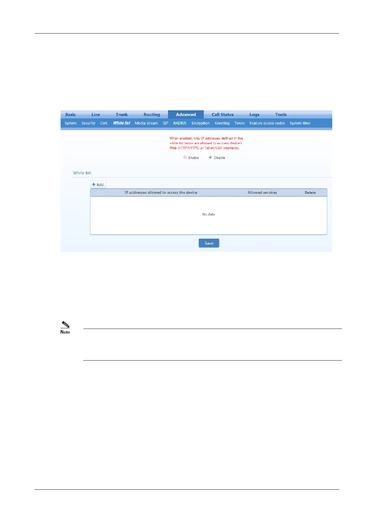 The white list is used to specify the IP addresses from which accessing the device through Web or