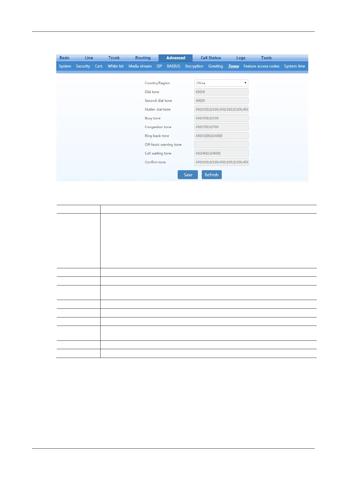 Figure 2-52 Call Progress Tone Configuration Interface