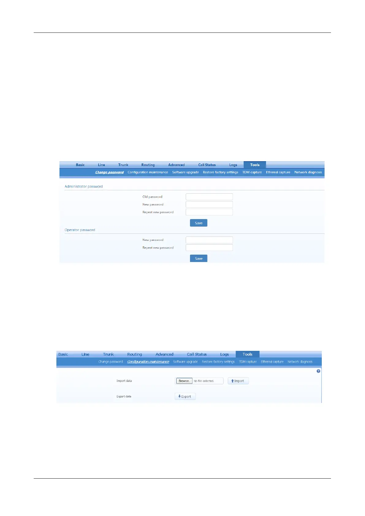 After login, click Tools to open this interface. Only the administrator is entitled to change the password of