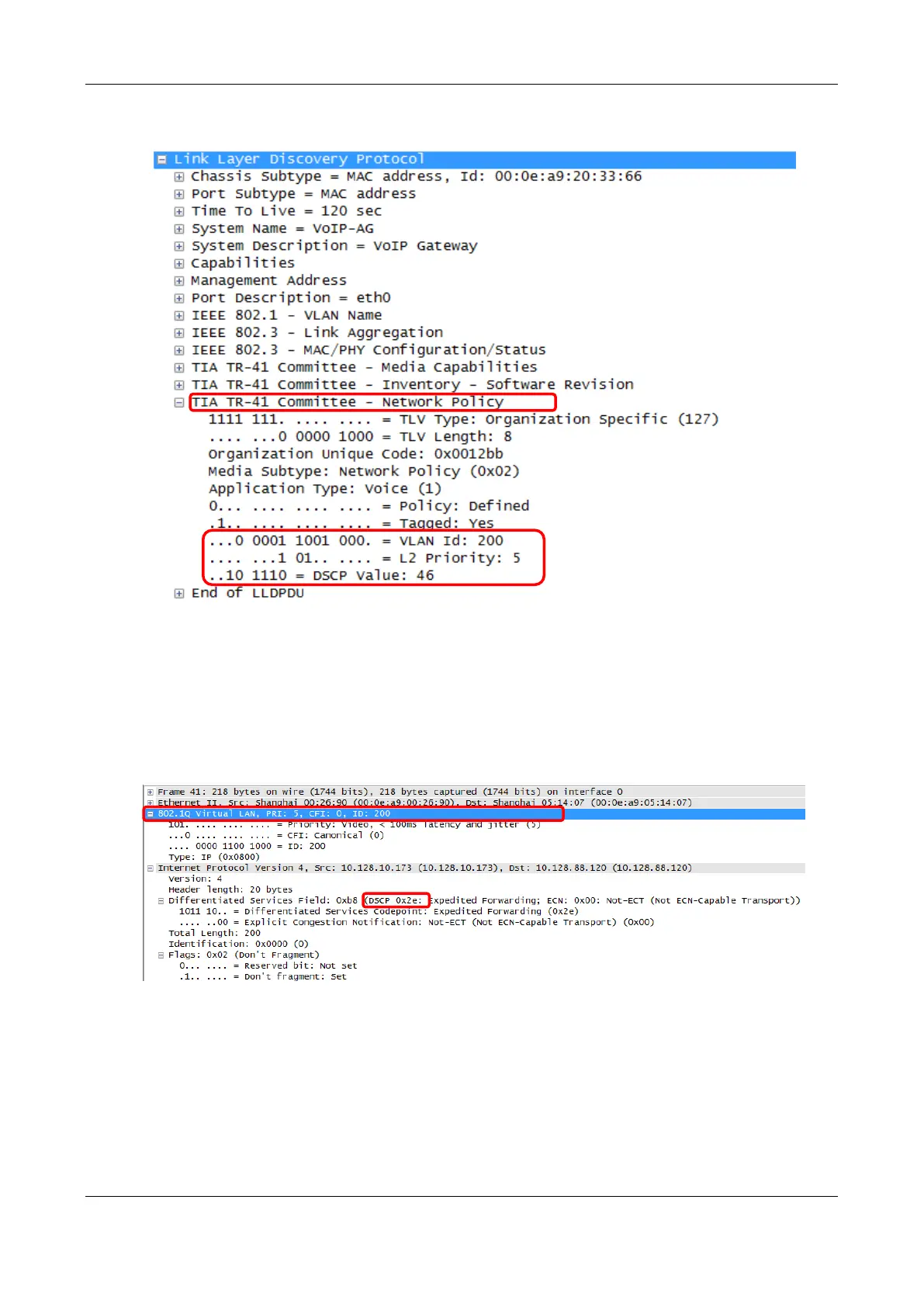Ethernet frame headers of all messages to be sent. In addition, the device adds a DSCP value to the RTP
