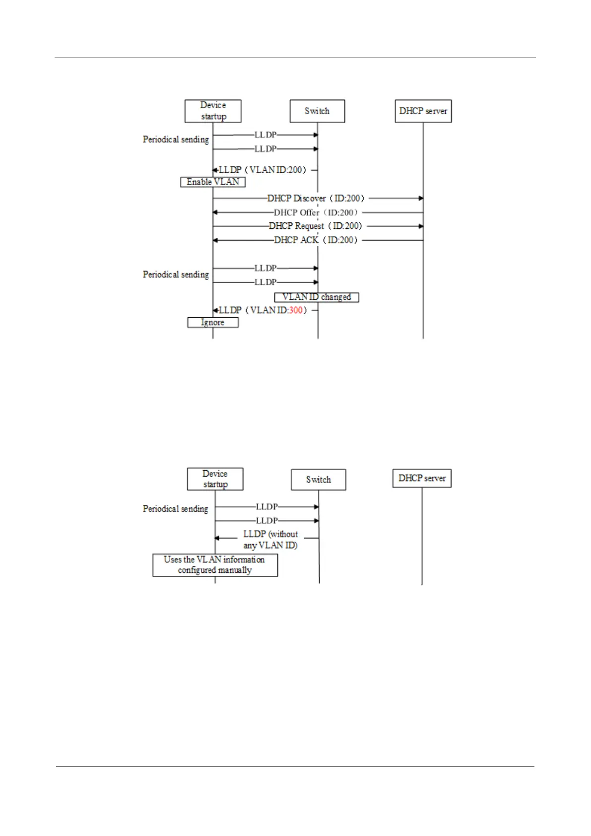 During startup period, if the device receives LLDP messages with no VLAN ID, it uses the VLAN