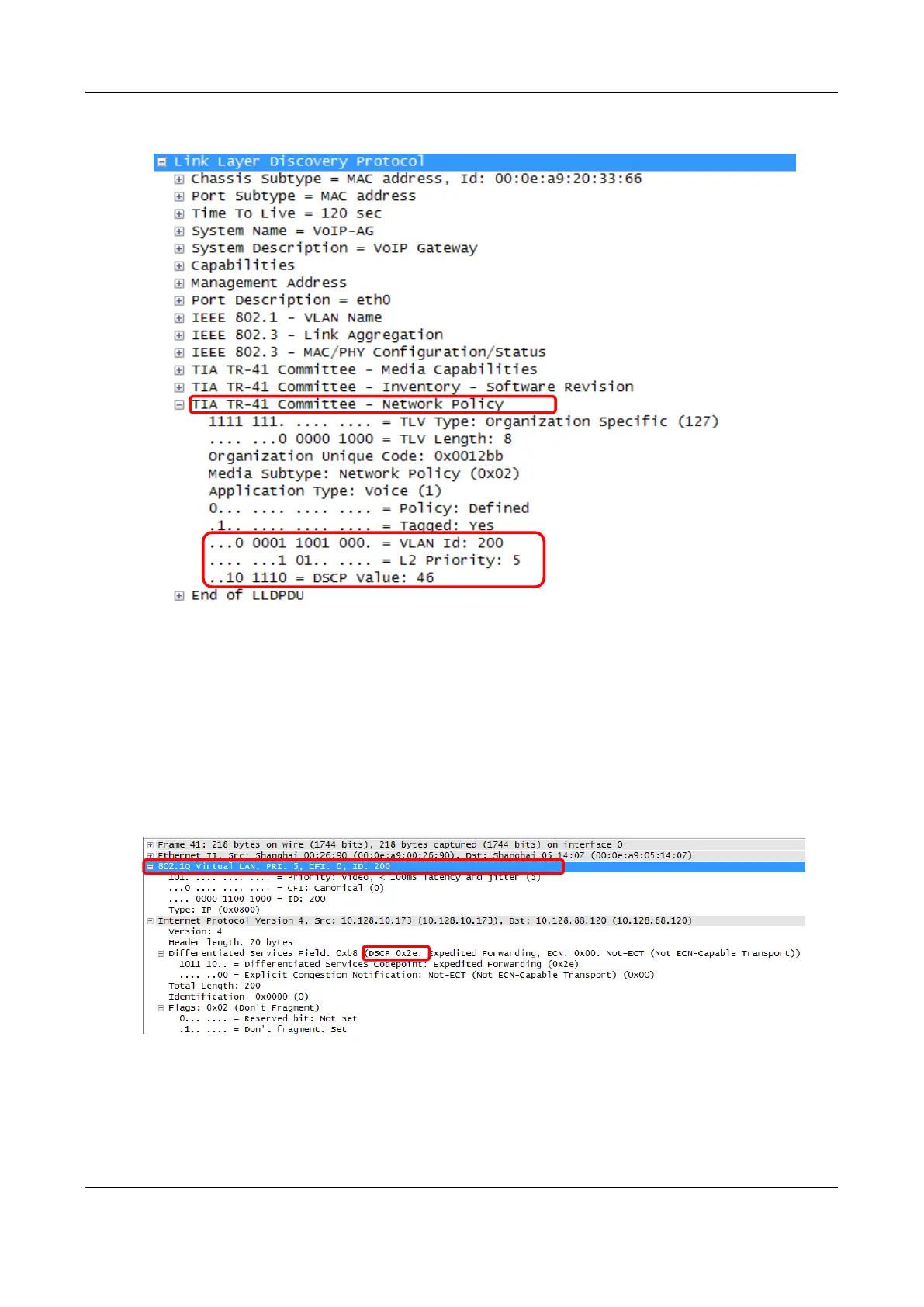 Ethernet frame headers of all messages to be sent. In addition, the device adds a DSCP value to the RTP