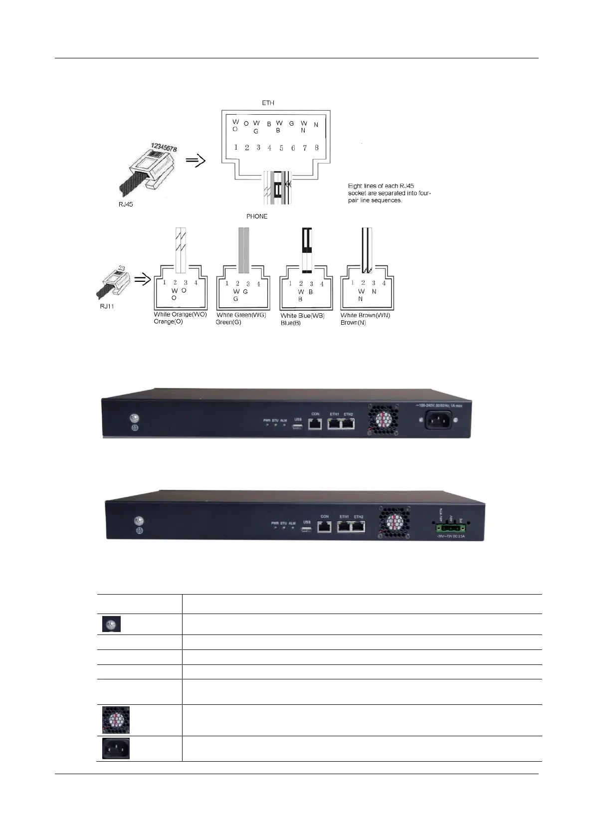 Table 1-14 Description of MX60 Back Panel
