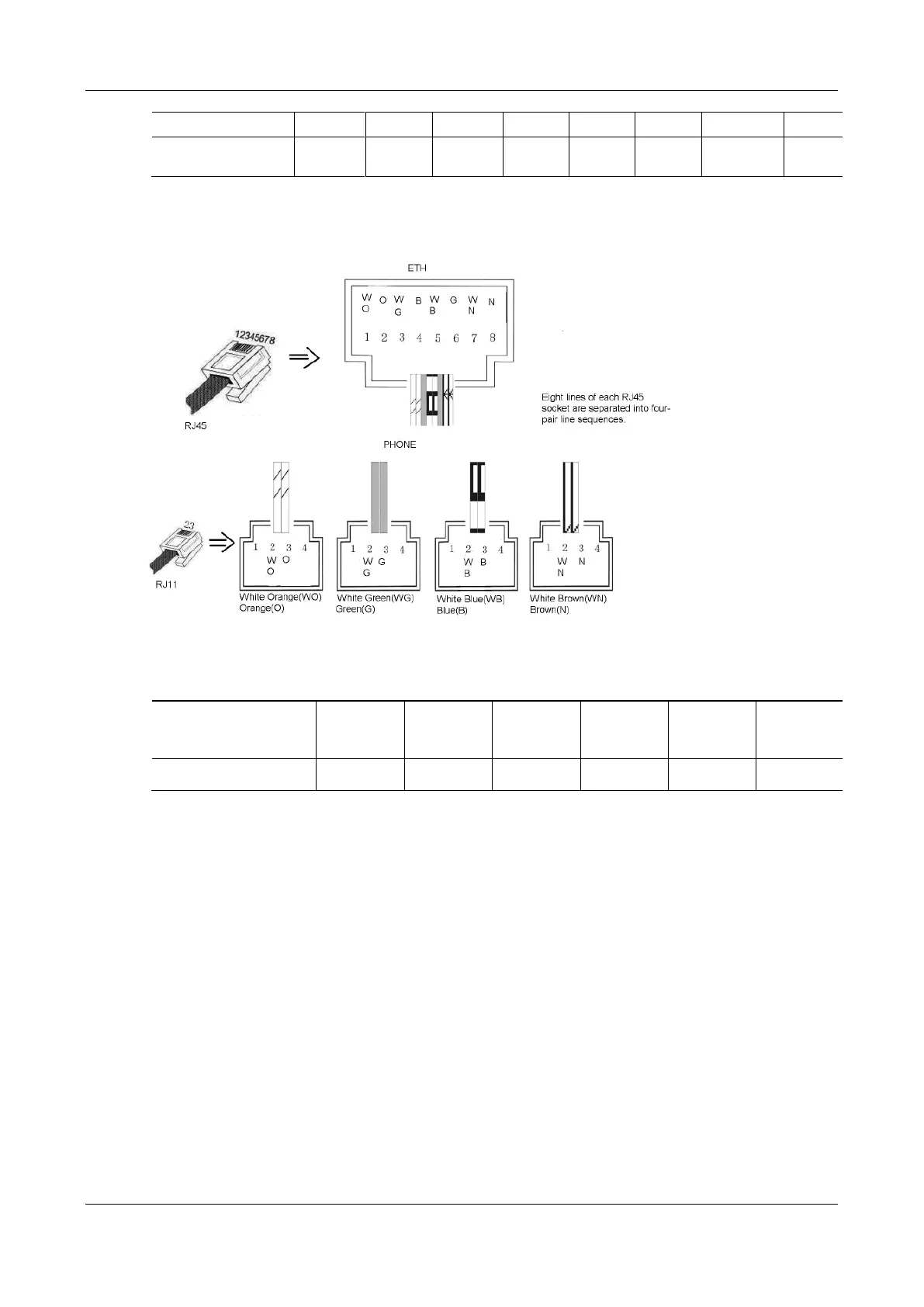 matrixes matches four telephone lines on a RJ45. The first row on the left matches Line 1-4 respectively