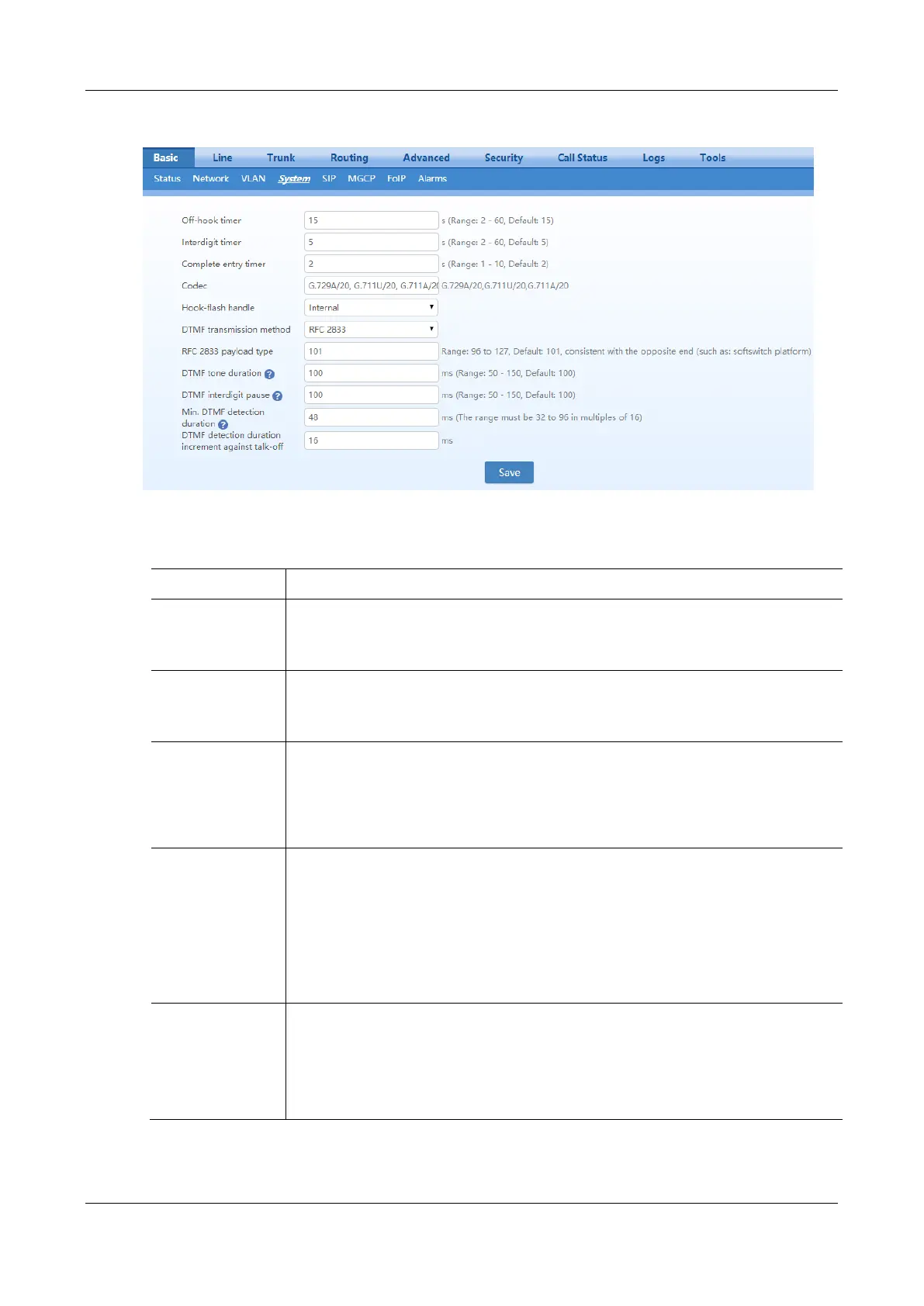 default one will be used. For example, if the codec is set to G.729A, the device automatically