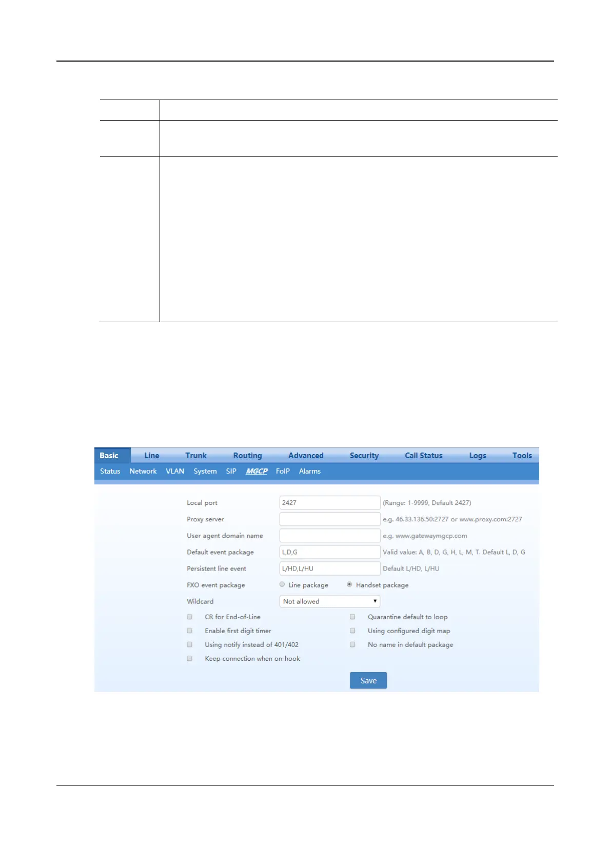The gateways use SIP protocol by default. When the gateways need to interface with MGCP protocol -