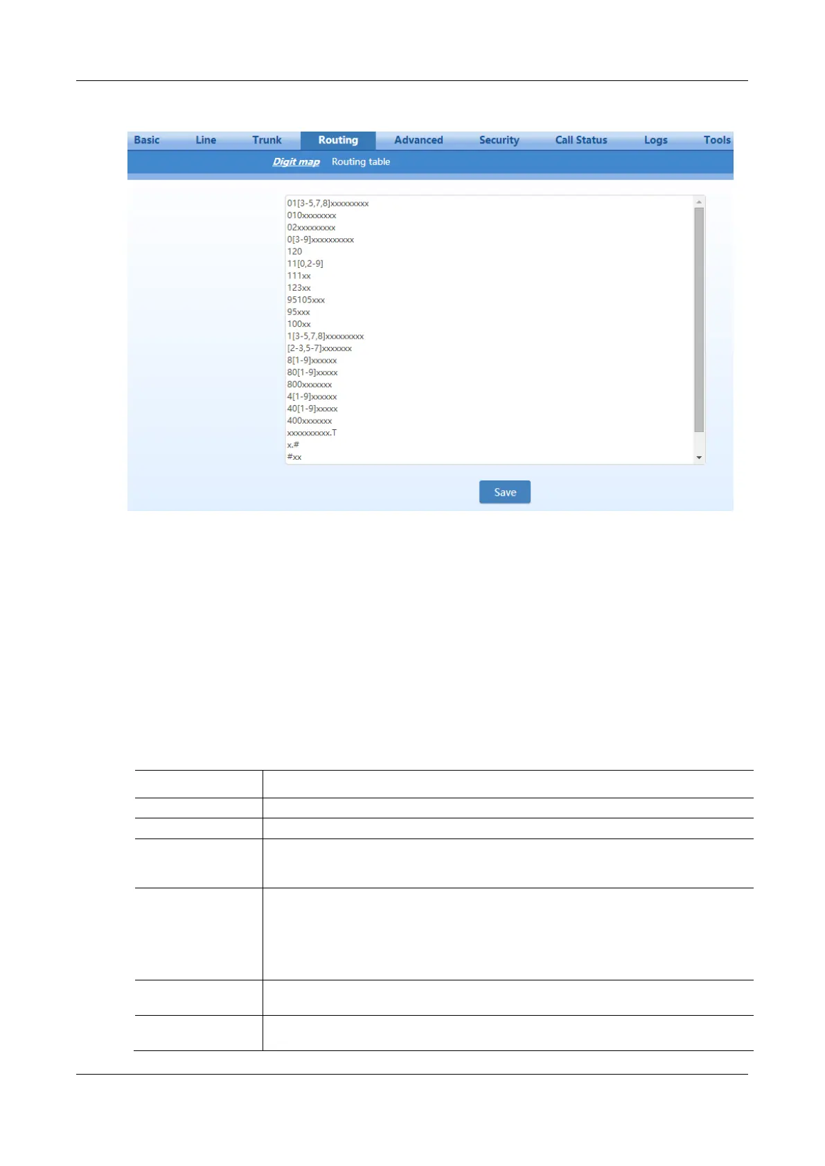 numbers and 38 characters. The total size of the dialing rules table (all dialing rules) can be up to 2280