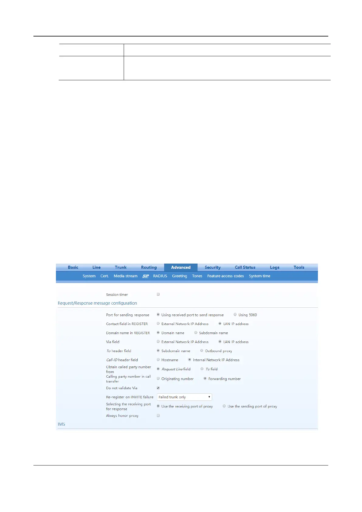 After login, click Advanced > SIP to open this interface.