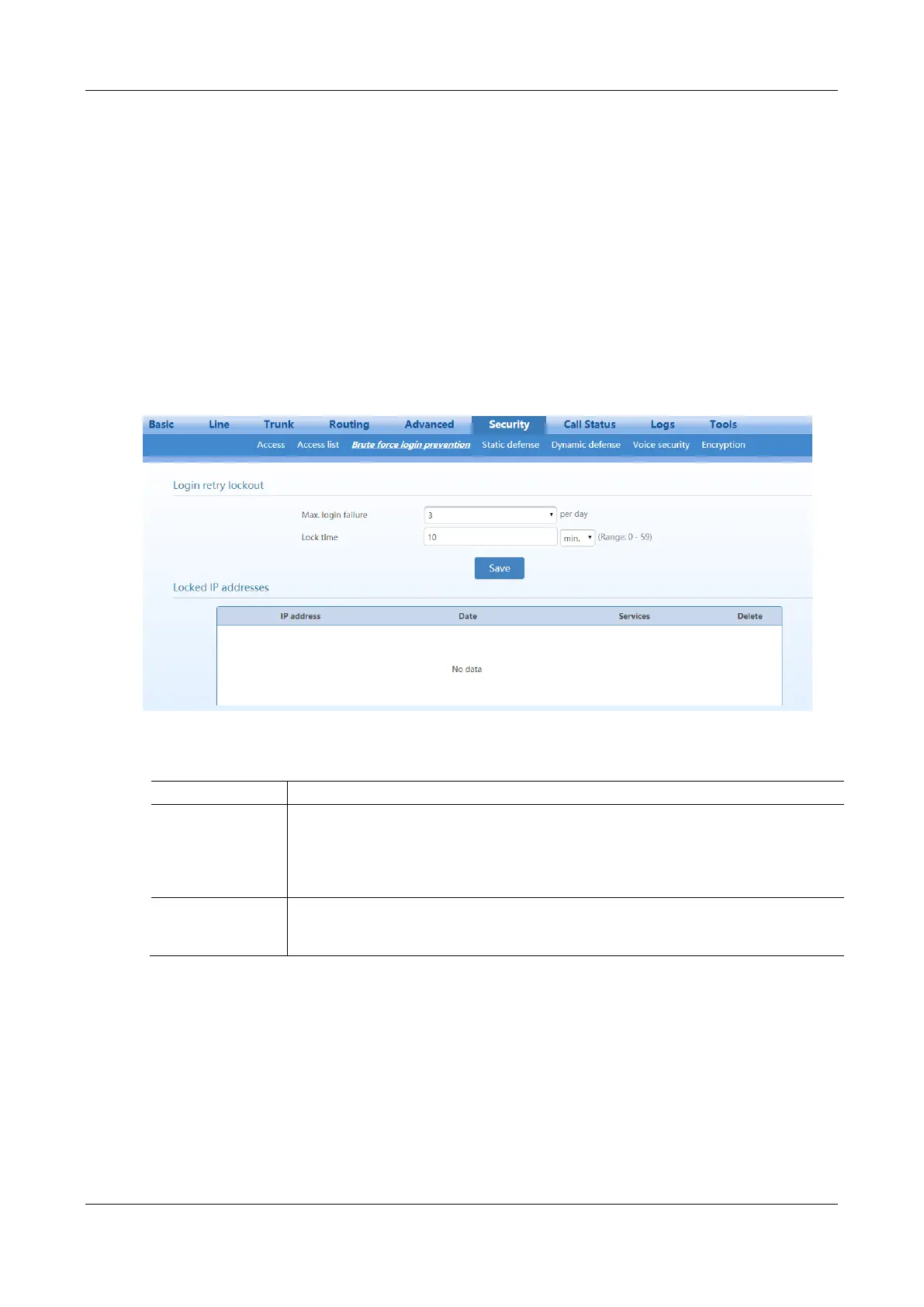 After login, choose Security > Brute force login prevention, to go to the configuration interface.