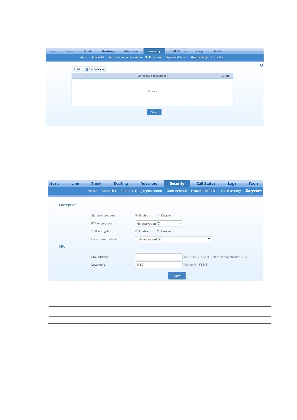 Figure 2-63 Voice Security Configuration Interface