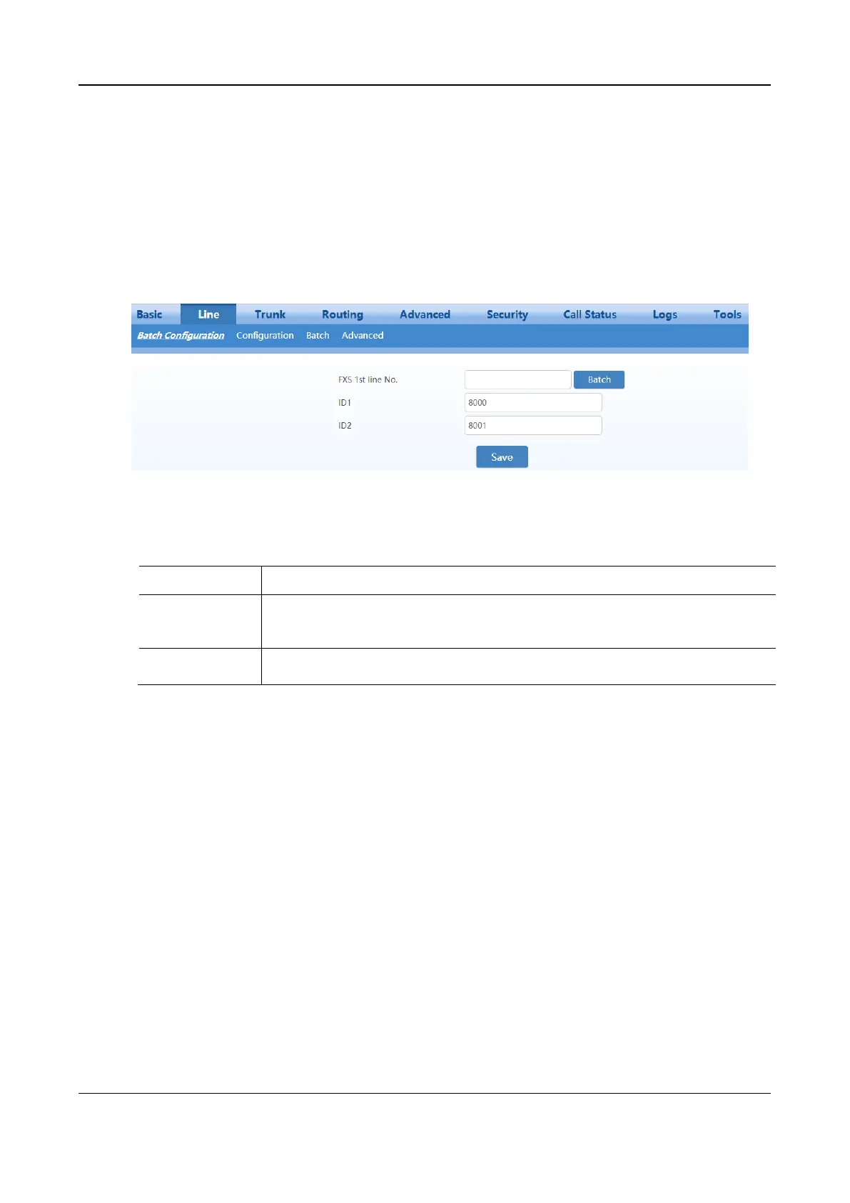 After login, click Line > Batch Configuration (Phone number) to open the configuration interface.