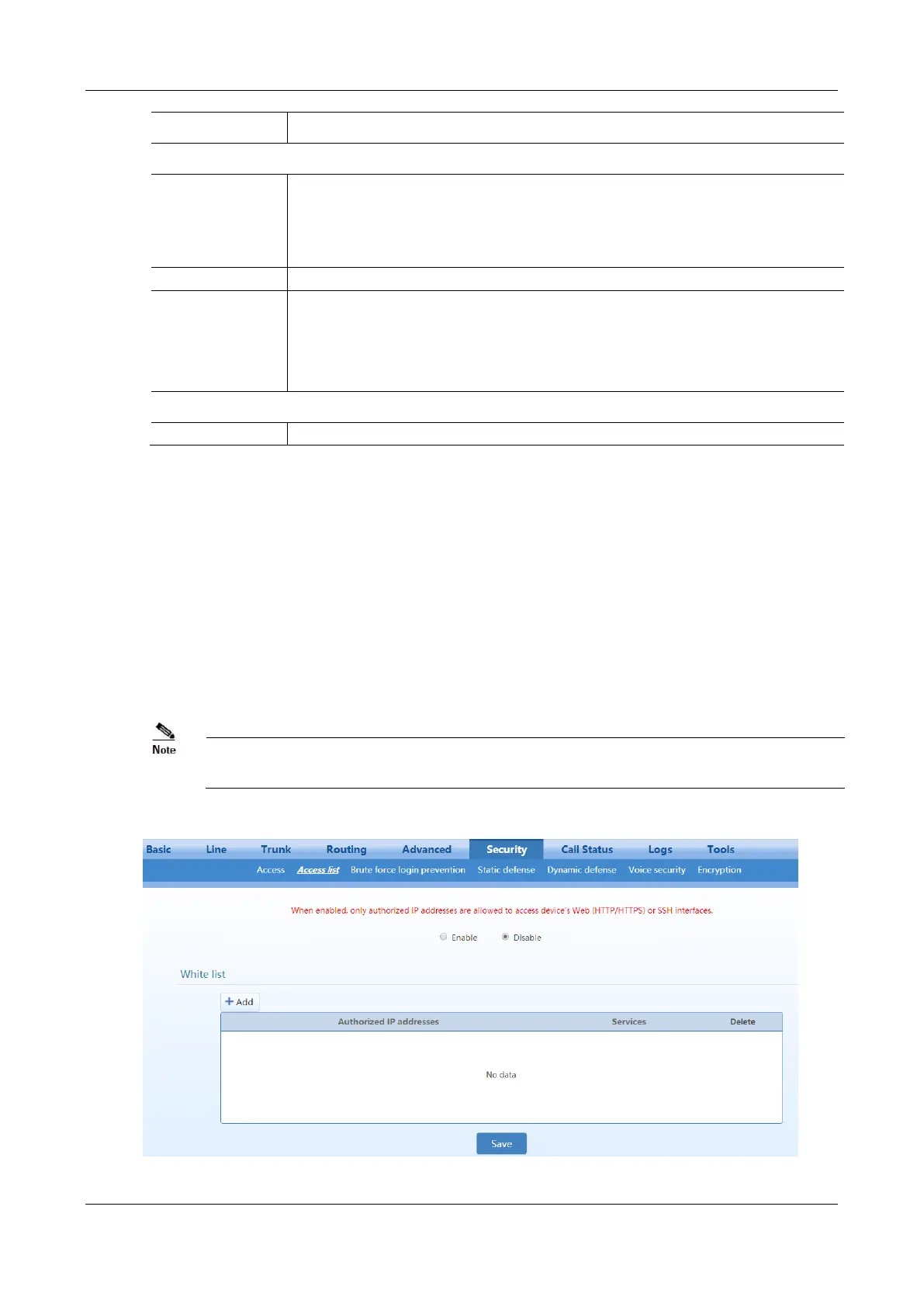 Once access list is enabled, only addresses specified here are allowed to access the device through Web GUI