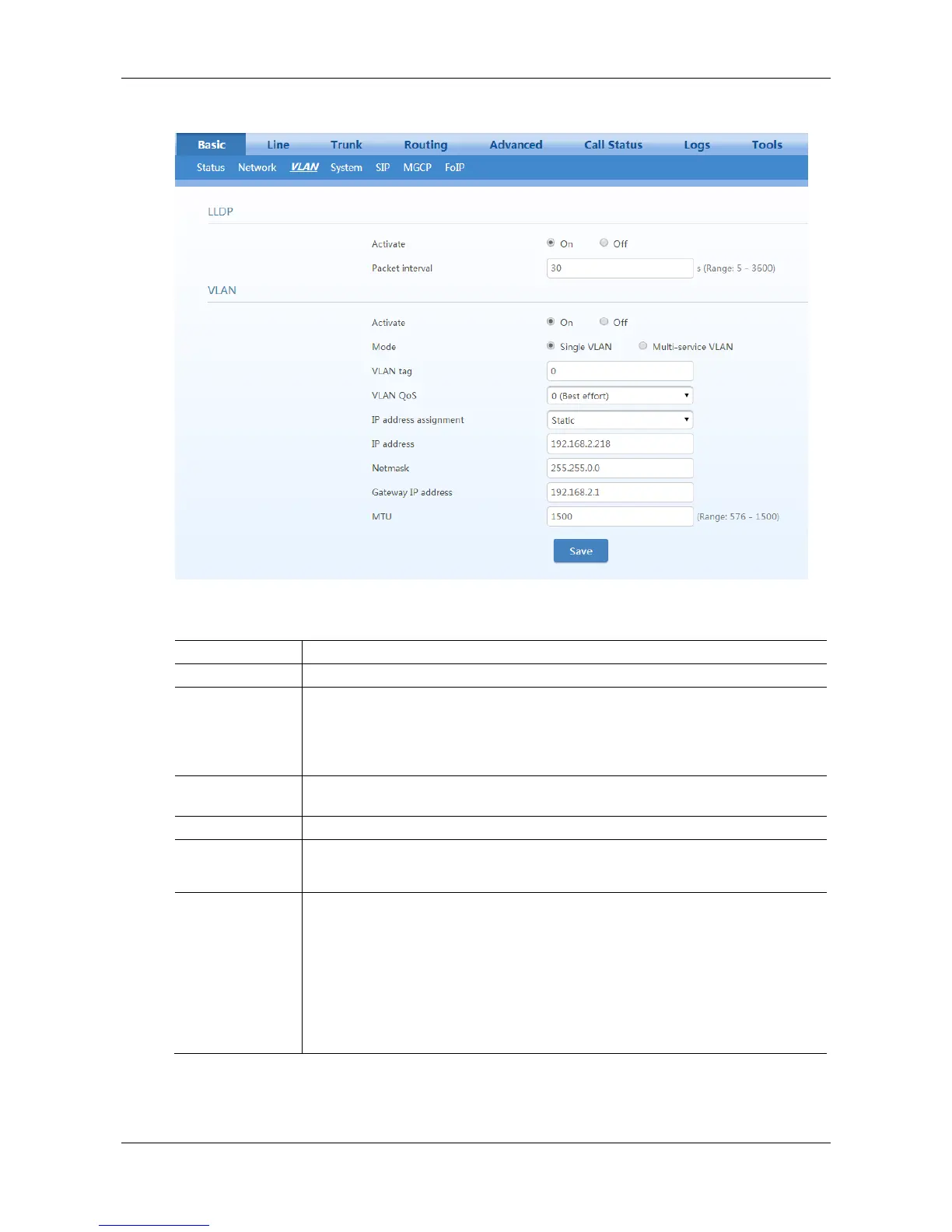 Table 2-4 VLAN Configuration Parameters