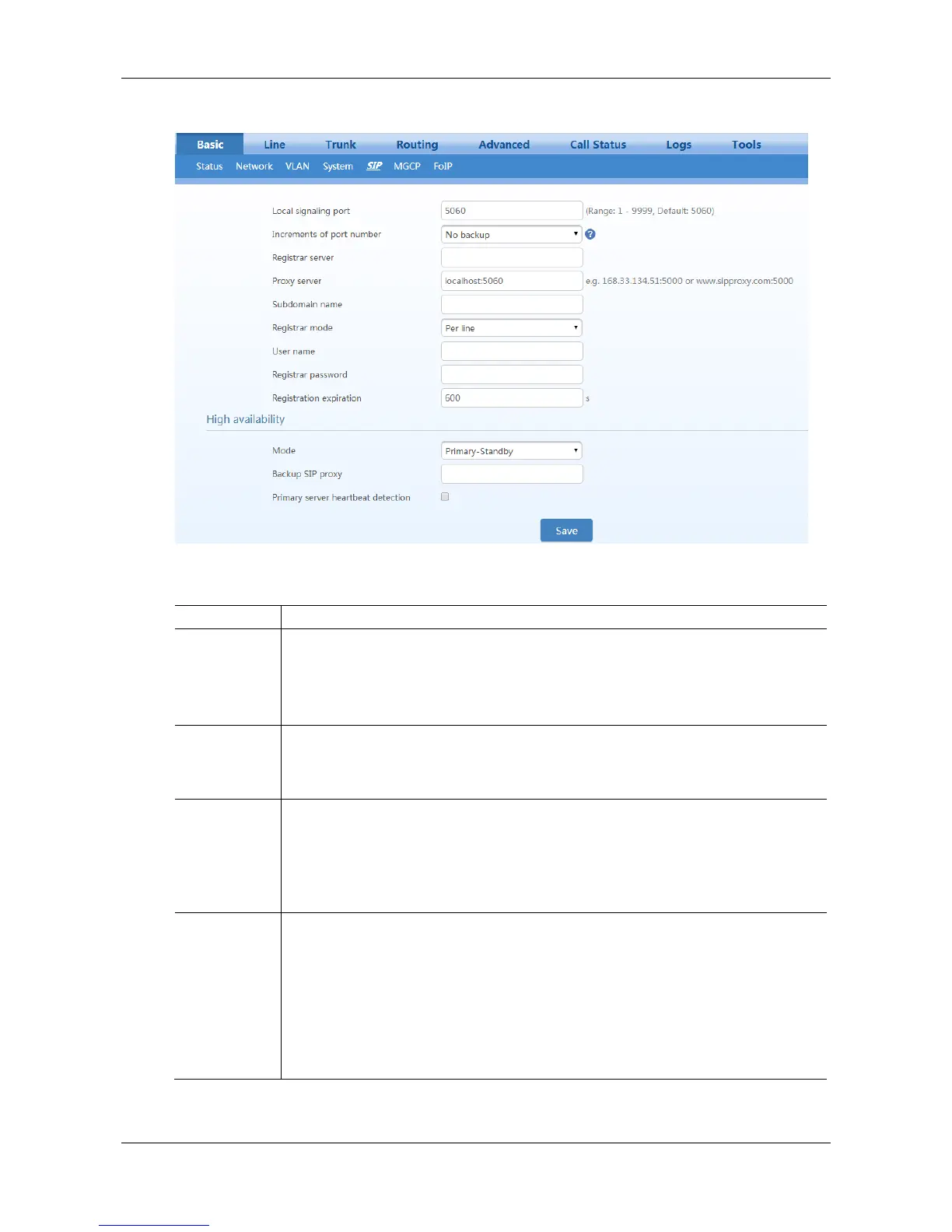 Configure the IP address and port number of the SIP proxy server. The address and port