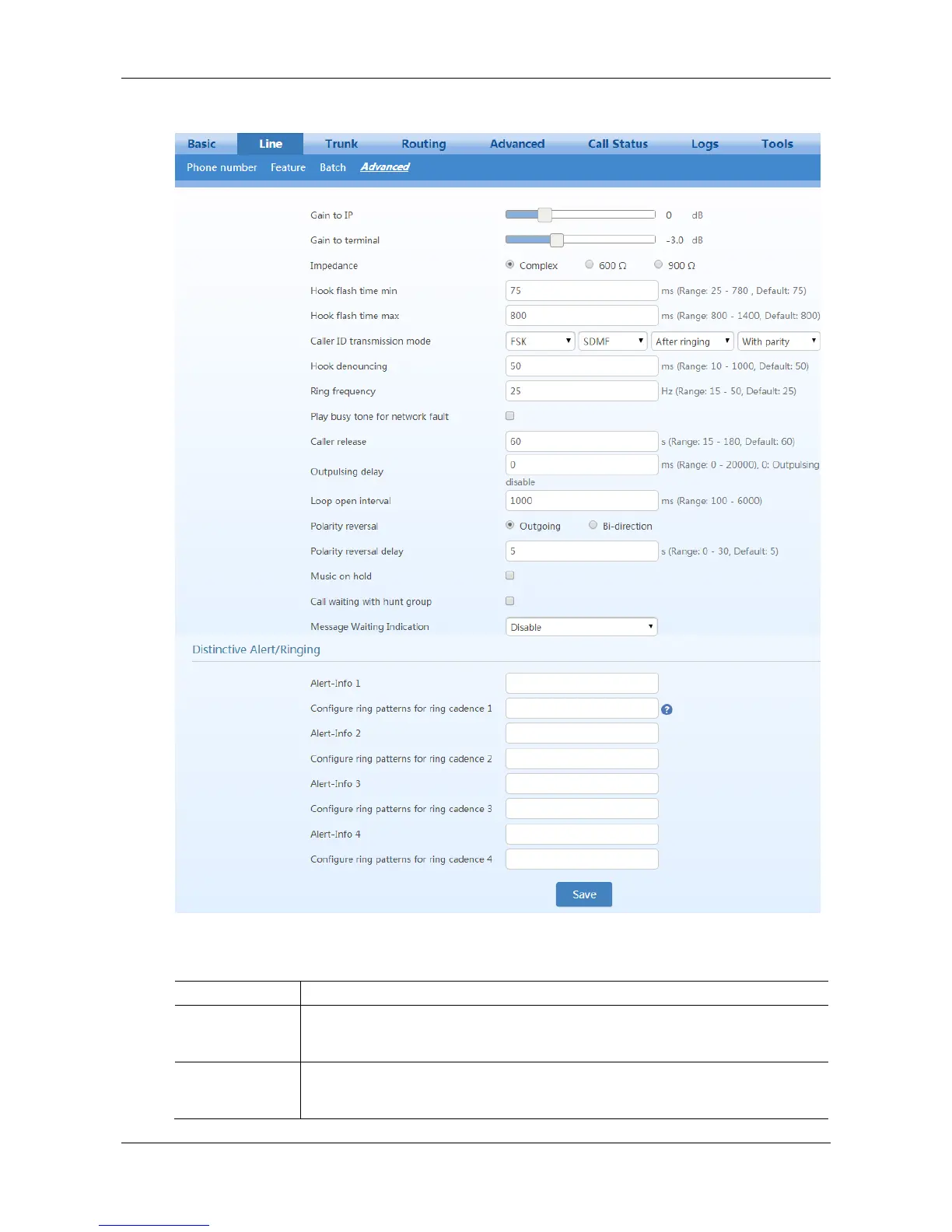 Set the voice volume gain toward FXS port side, the default is -3. Taking decibel as