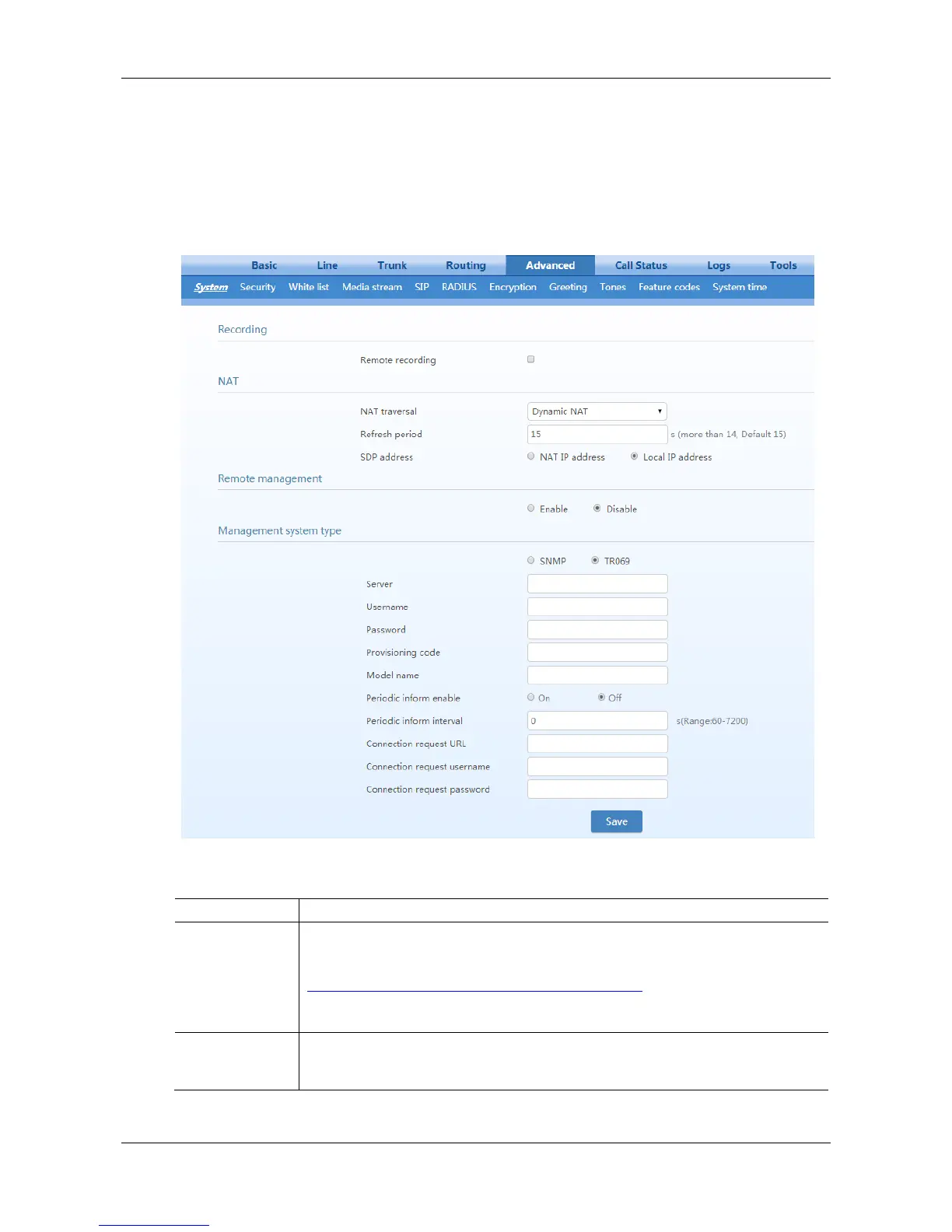 After login, click the label of Advanced > System to open this interface.