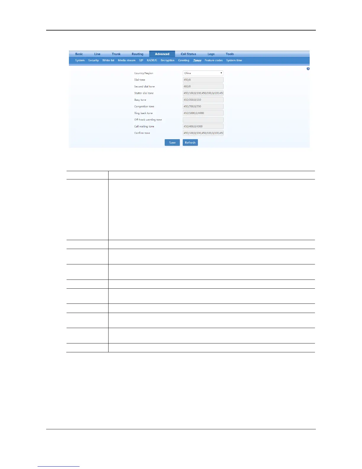 Figure 2-38 Call Progress Tone Configuration Interface