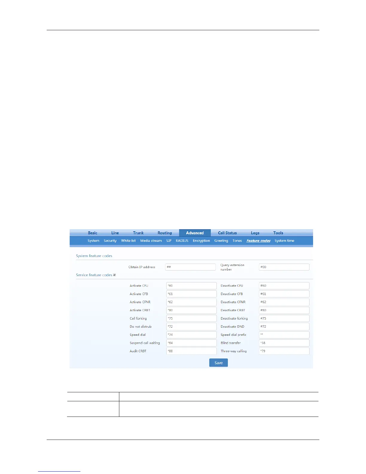 The feature codes consist of system feature codes and service feature codes. The system feature codes are