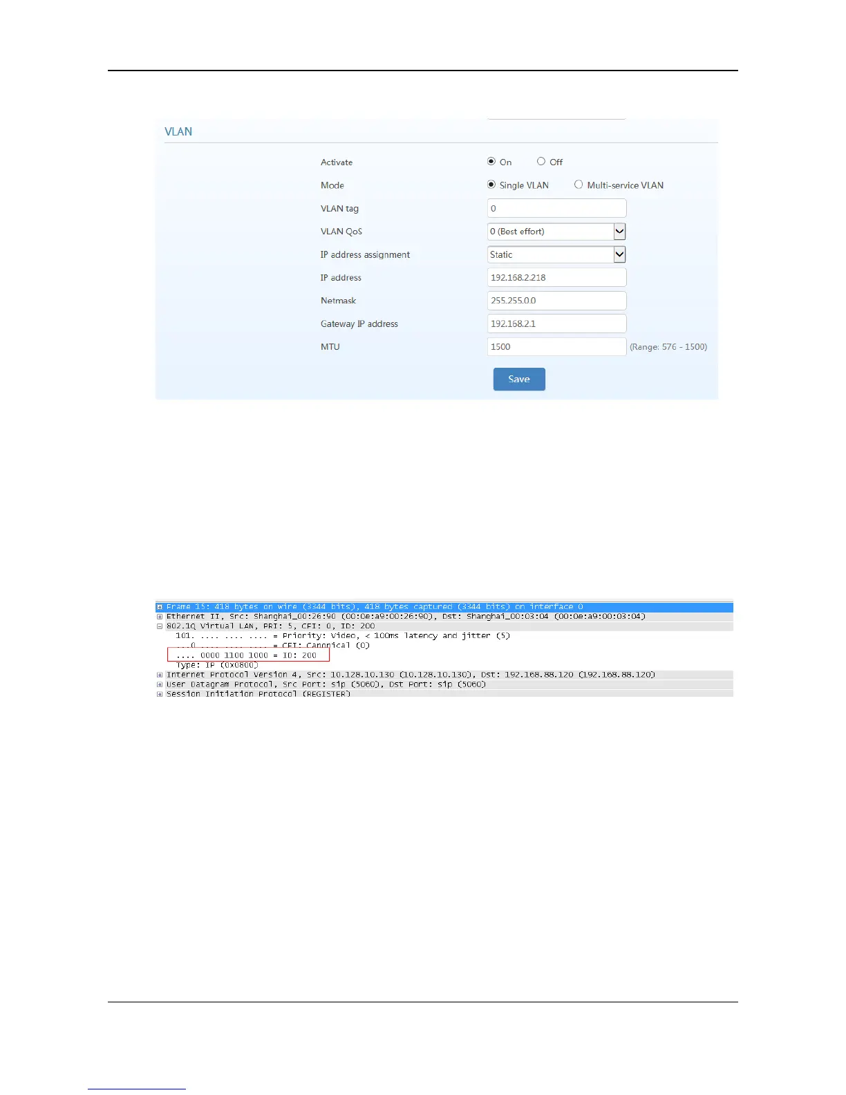 the device. Check that all data packets sent by the device carry a VLAN ID 200, as shown in Figure