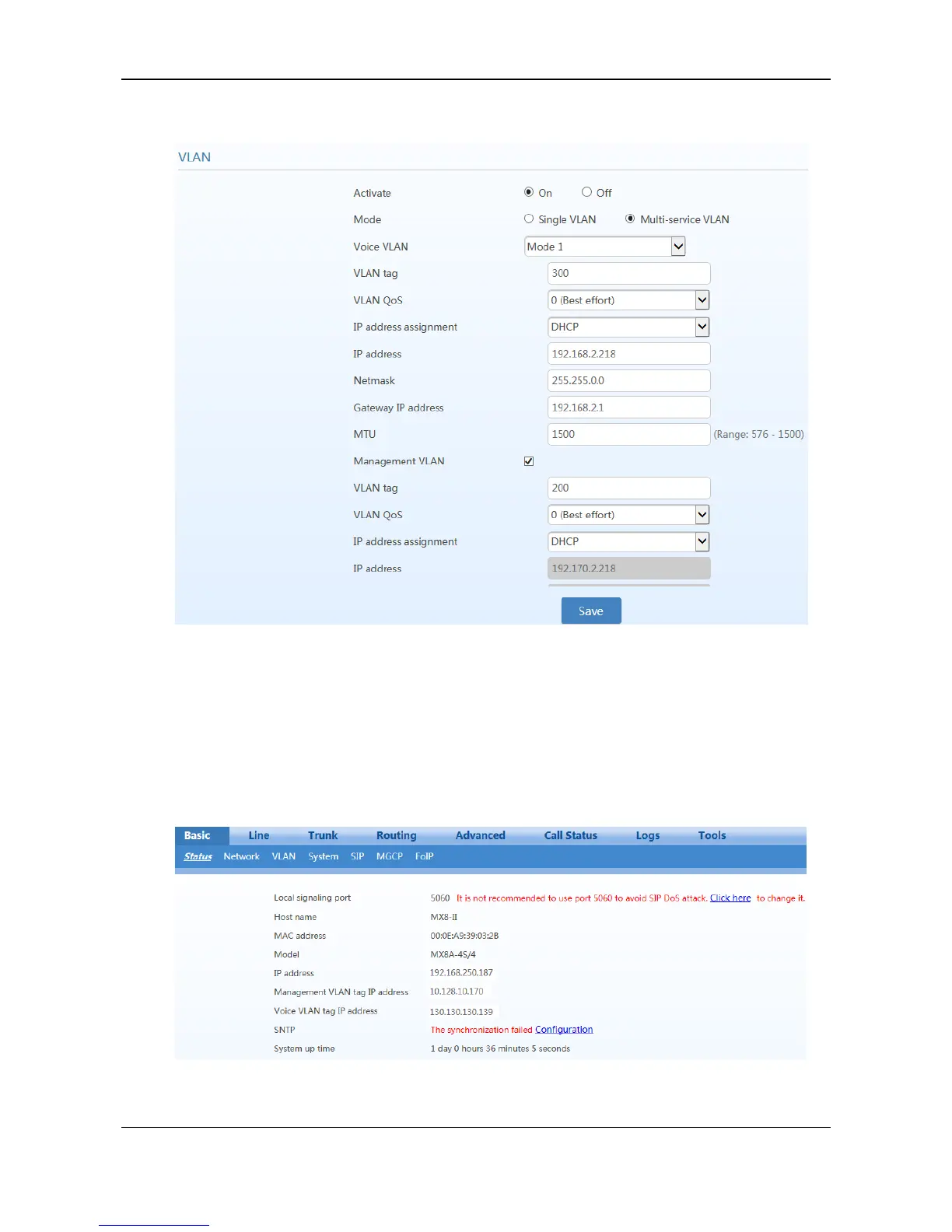 3. Use the PC belonging to VLAN 200 to log in to the web page. On the Basic > Status page, the IP