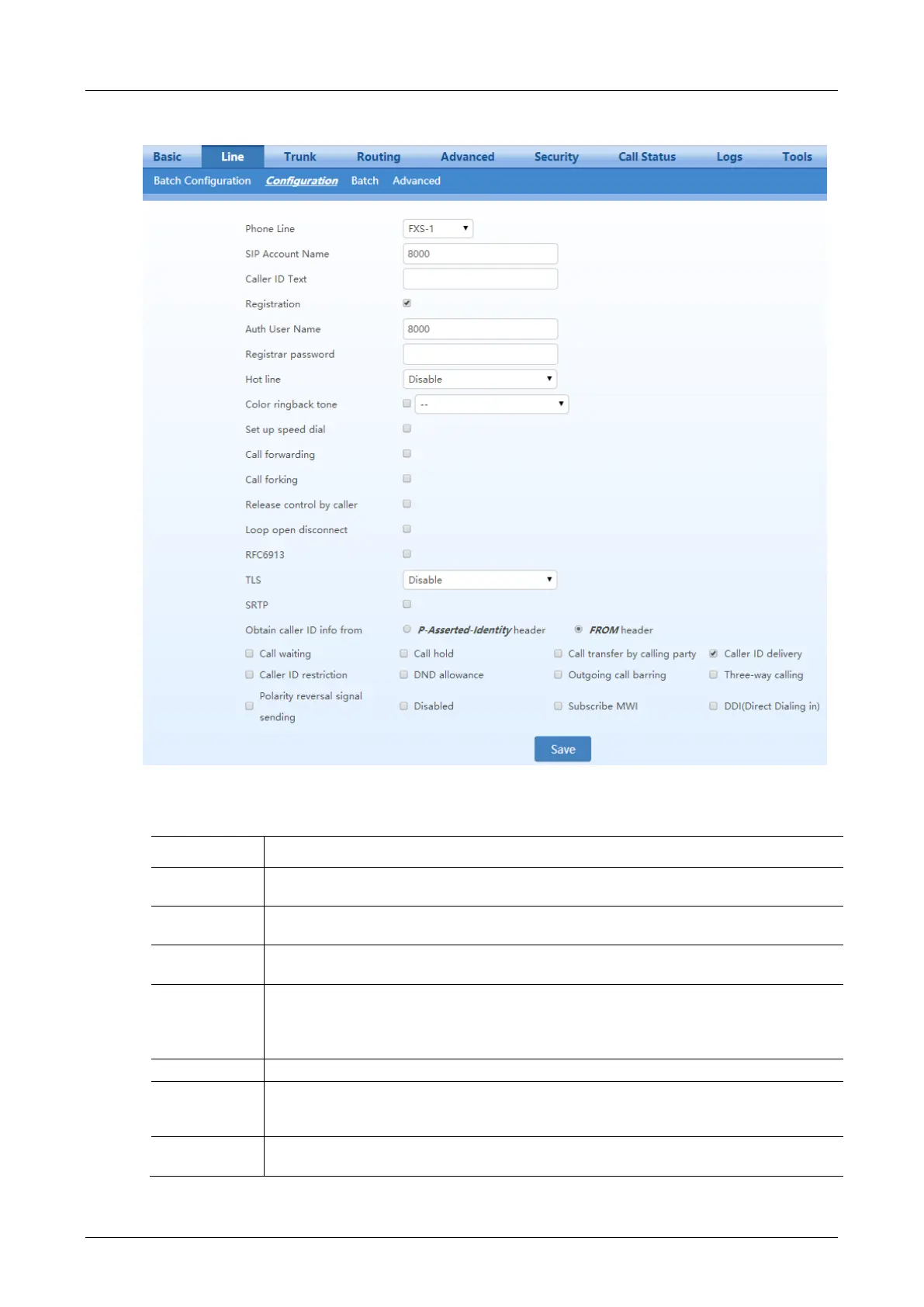 Fill in the port number associated with this port. “FXS-n” corresponds to the Line>Batch