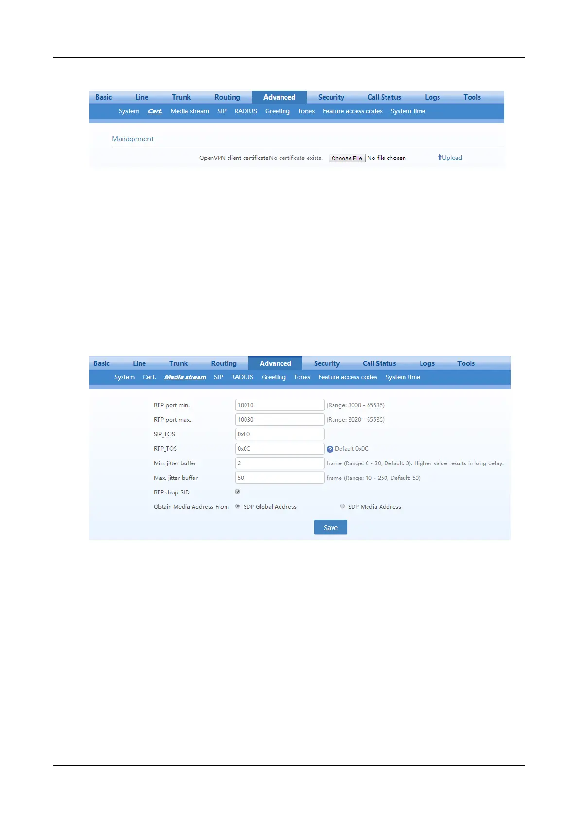 Figure 2-30 HX4E/MX8A/HX4G/MX8G Media Stream Configuration Interface