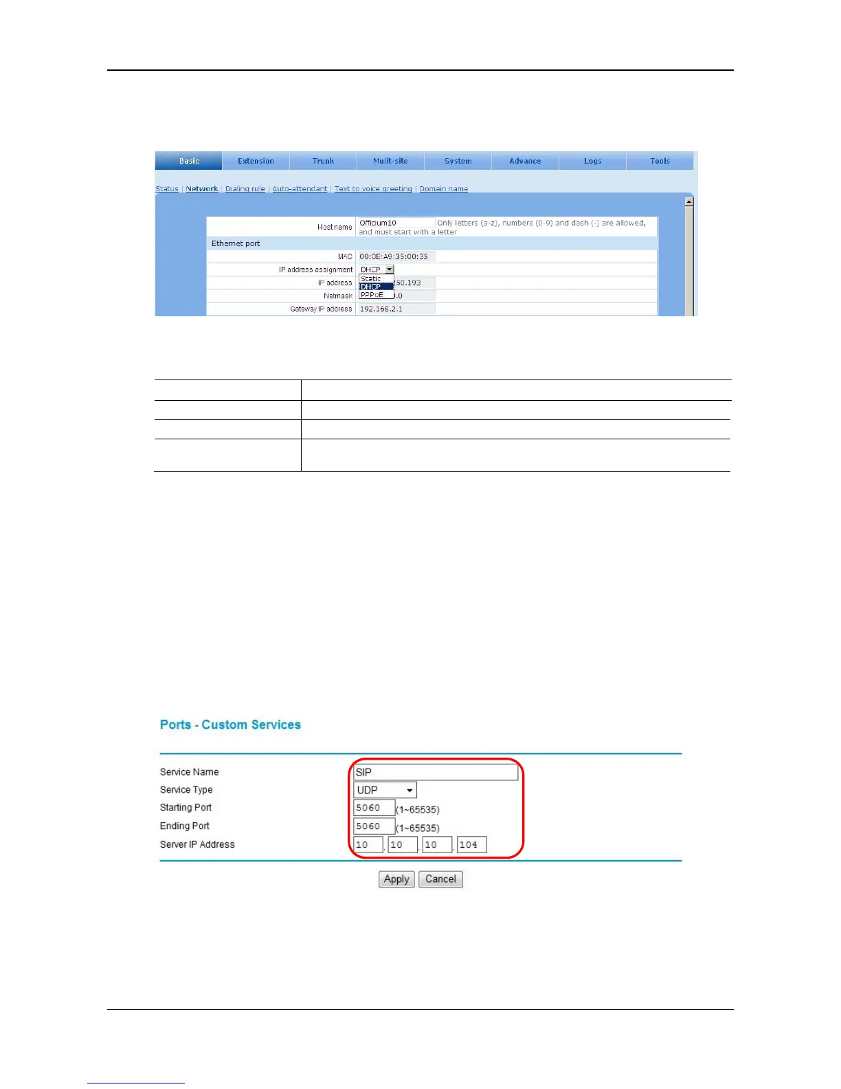 Go to the Basic > Network page for network settings. See Fig. 1-3.