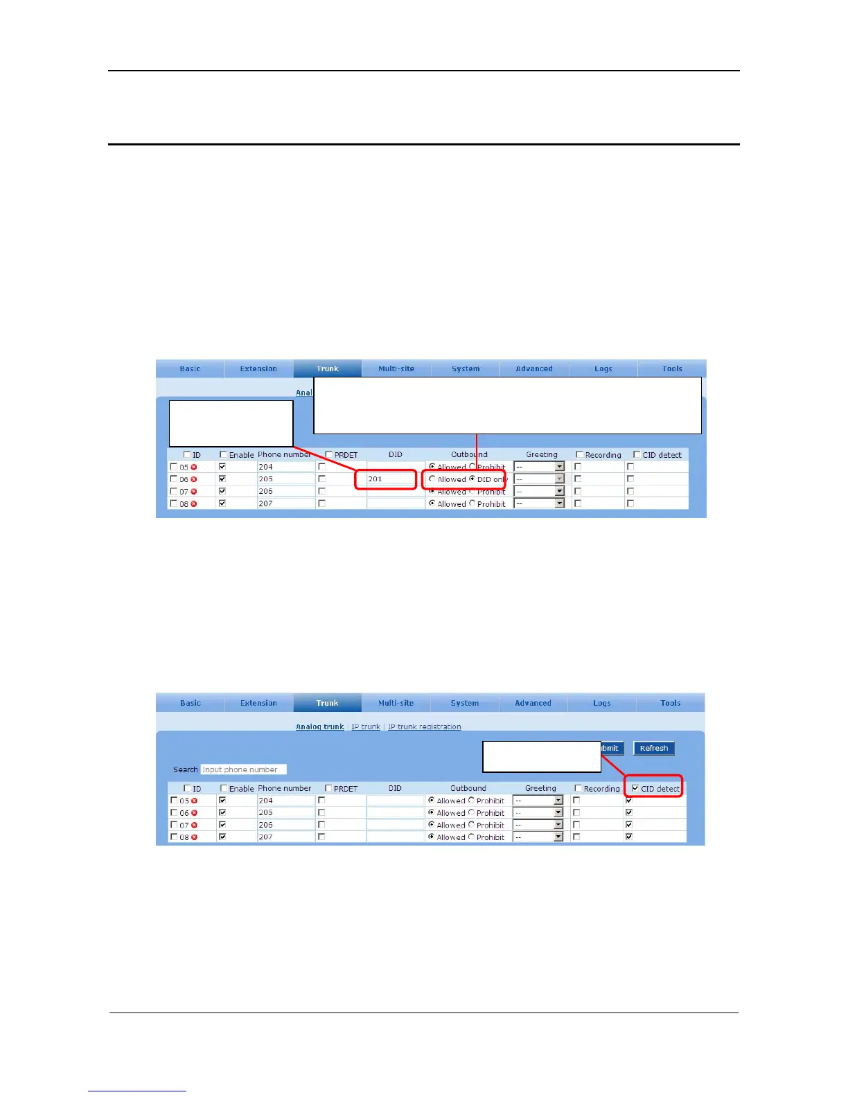 Go to the System > Trunk page to configure Caller ID detection mode.