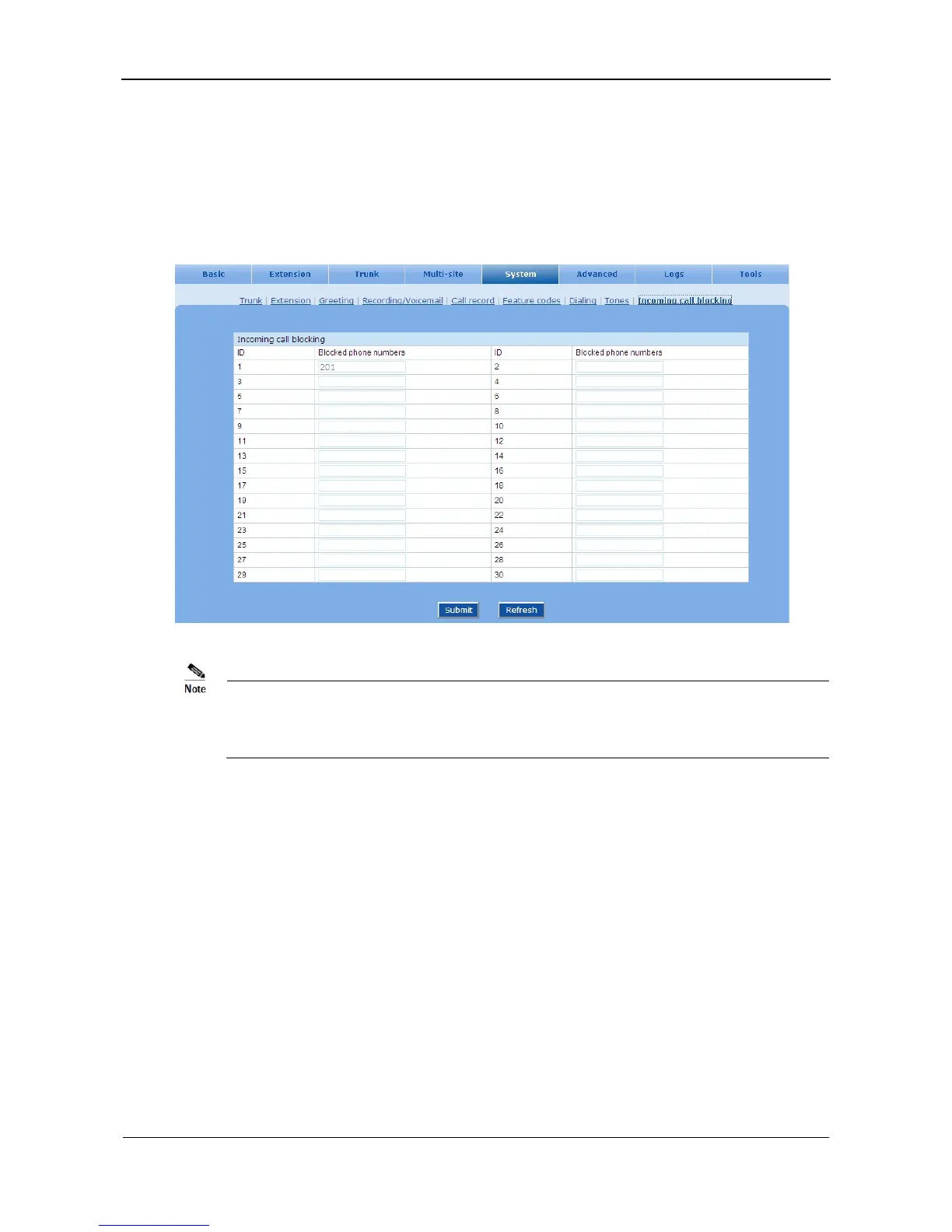 Go to the System > Incoming call blocking page seen in Figure 6-16.