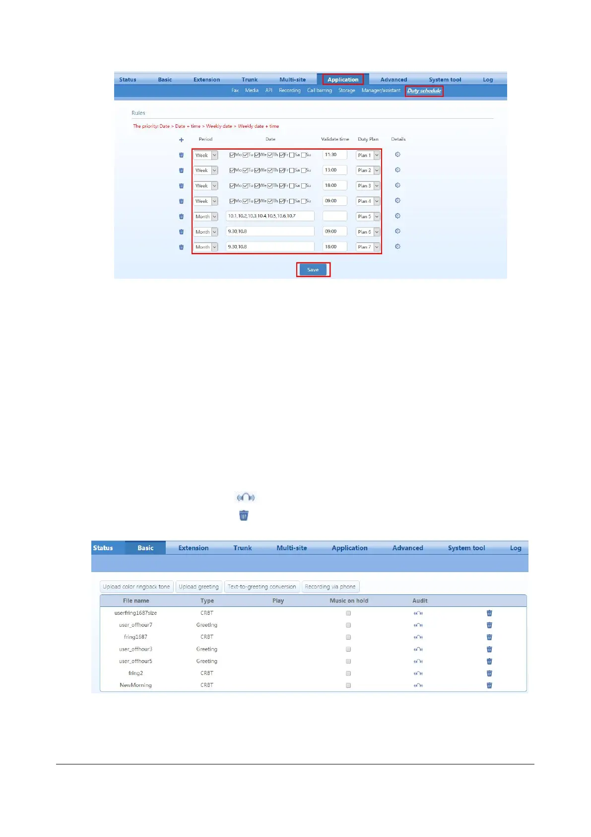 Step 1 Go to Basic > IVR, select the check box of the desired audio file below Music on hold, and then