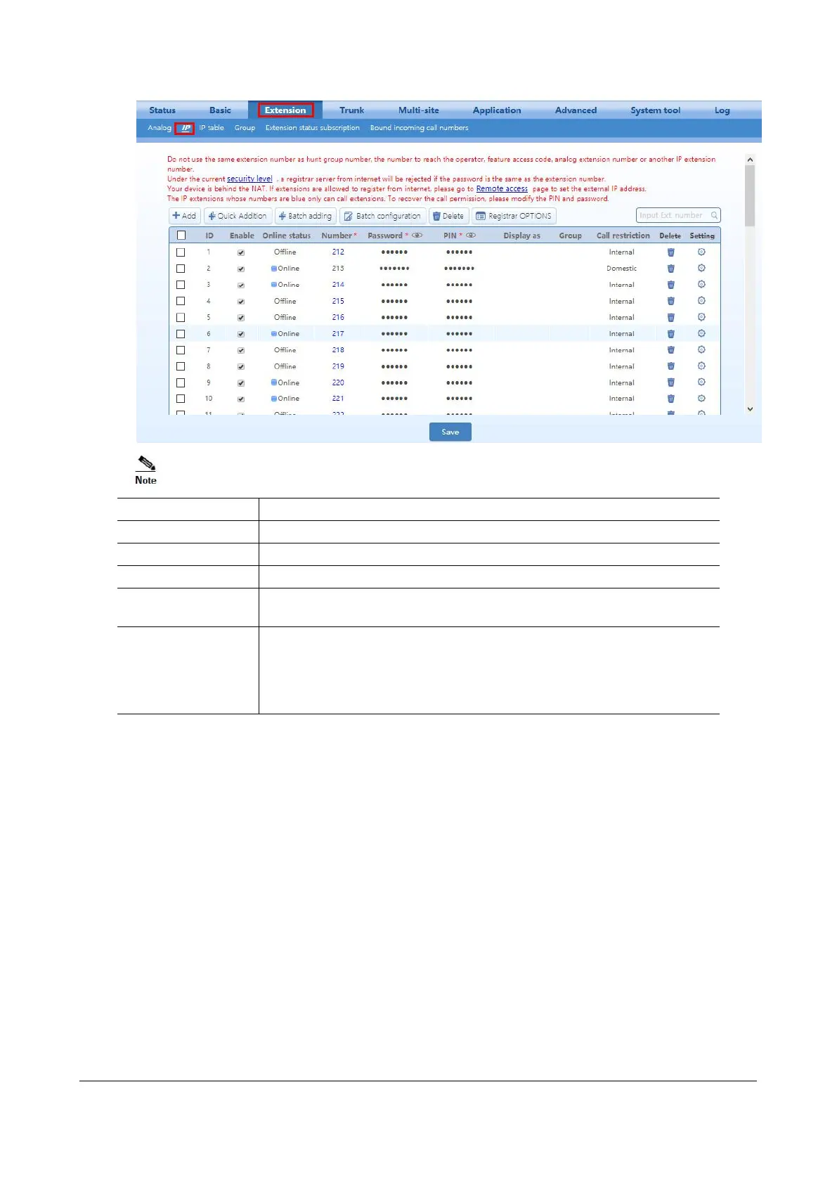 Step 2 Go to Extension > Analog/IP > Setting, and set the Call Forward to CFA (voicemail) or