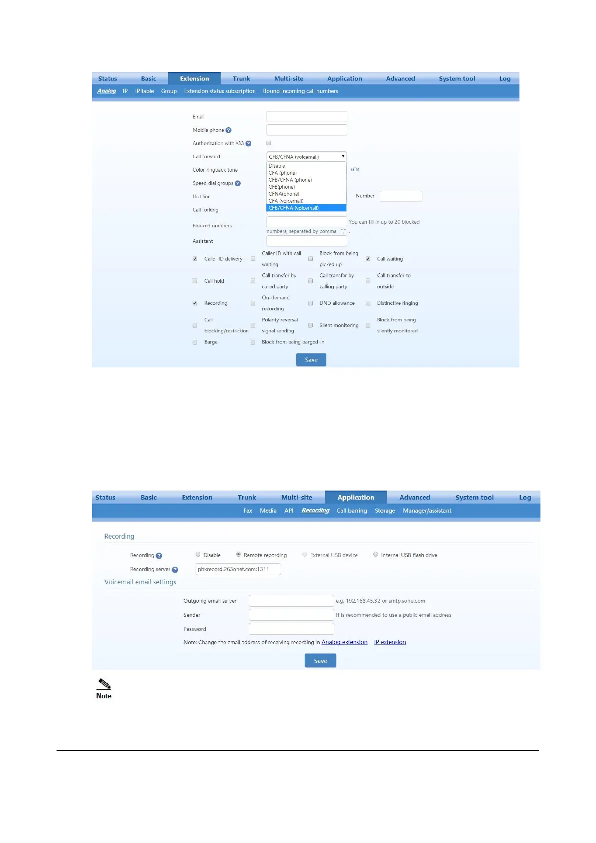 When the recording mode is Remote recording, the voicemail messages can be sent to the mailbox of the